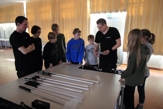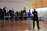 Der große Mehrzweckraum, welcher üblicherweise für Schulfeste, Elternabende oder Kunstprojekte verwendet wird, war dafür wie geschaffen. Zu unserer Freude waren die Schülerinnen und Schüler von unseren Lichtschwertern begeistert. Sie trainierten konzentriert und mit vollem Eifer die verschiedenen Workshopeinheiten. Im Anschluss an den praktischen Teil, zeigten wir die einzelnen Bestandteile unserer selbstgebauten Lichtschwerter und erläuterten deren Funktionen sowie unser Vorgehen beim Bau. Auch hier war das Interesse groß und unseren Ausführungen wurde aufmerksam zugehört.