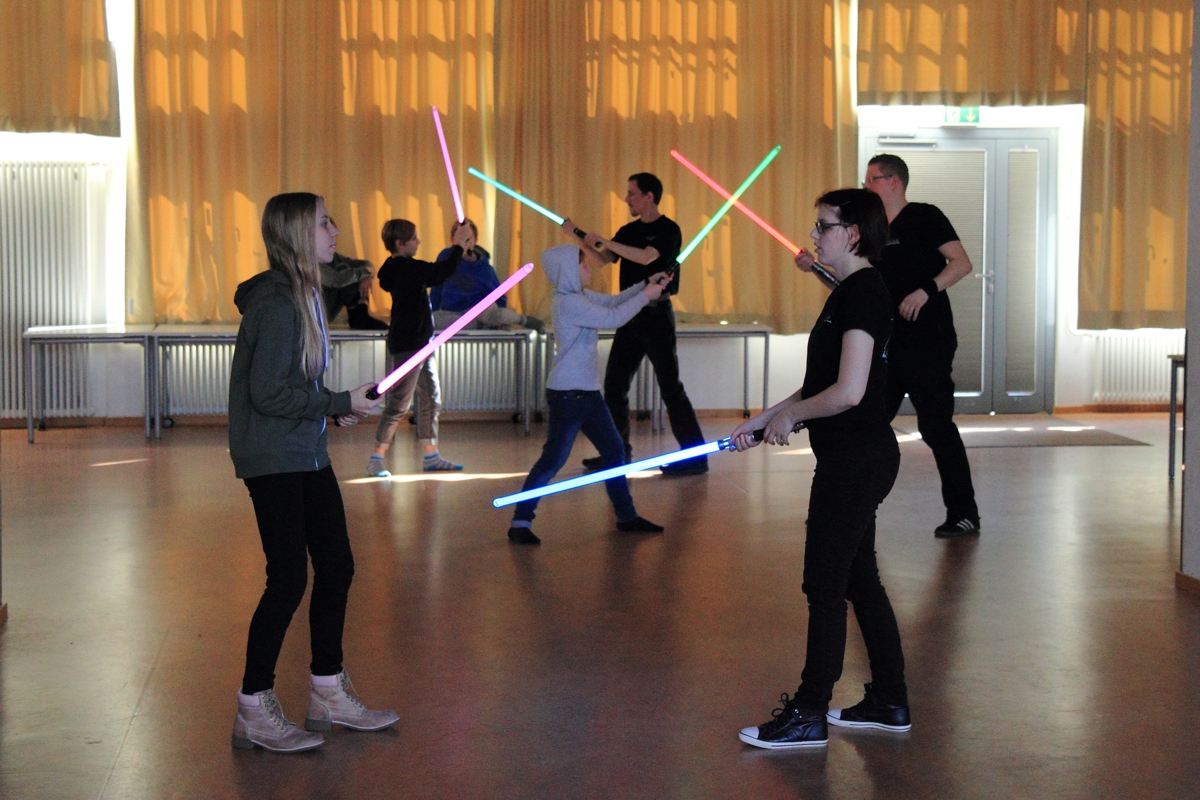 Am 16.02.2018 wurden wir von der Etude-DFG, der Freiwilligen Ganztagsschule am Deutsch-Französischen Gymnasium (DFG) in die Ferienbetreuung eingeladen. In den Räumlichkeiten des Deutsch-Französischen Gymnasiums in Saarbrücken trainierten wir mit den Schülerinnen und Schülern in unserem Workshop die Grundlagen im Lichtschwertkampf und der Lichtschwertchoreographie.