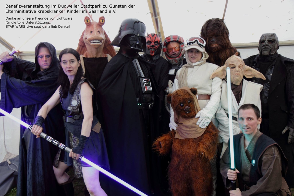 Am 28.05.2016 begleiteten wir unsere Freunde von STAR WARS Live nach Dudweiler zur Benefizveranstaltung zugunsten der “Elterninitiative krebskranker Kinder im Saarland e.V.”. Von den vielen tollen Kostümen begeistert, konnten die Kinder eine Menge Fotos machen. Nach Einsetzen sintflutartiger Regenfälle zogen wir uns dann in das große Hauptzelt vor der Bühne zurück, wo wir auch weiterhin für die Besucher da waren.