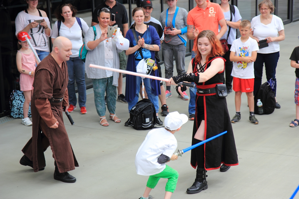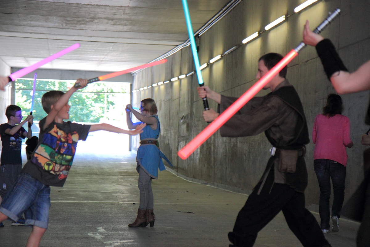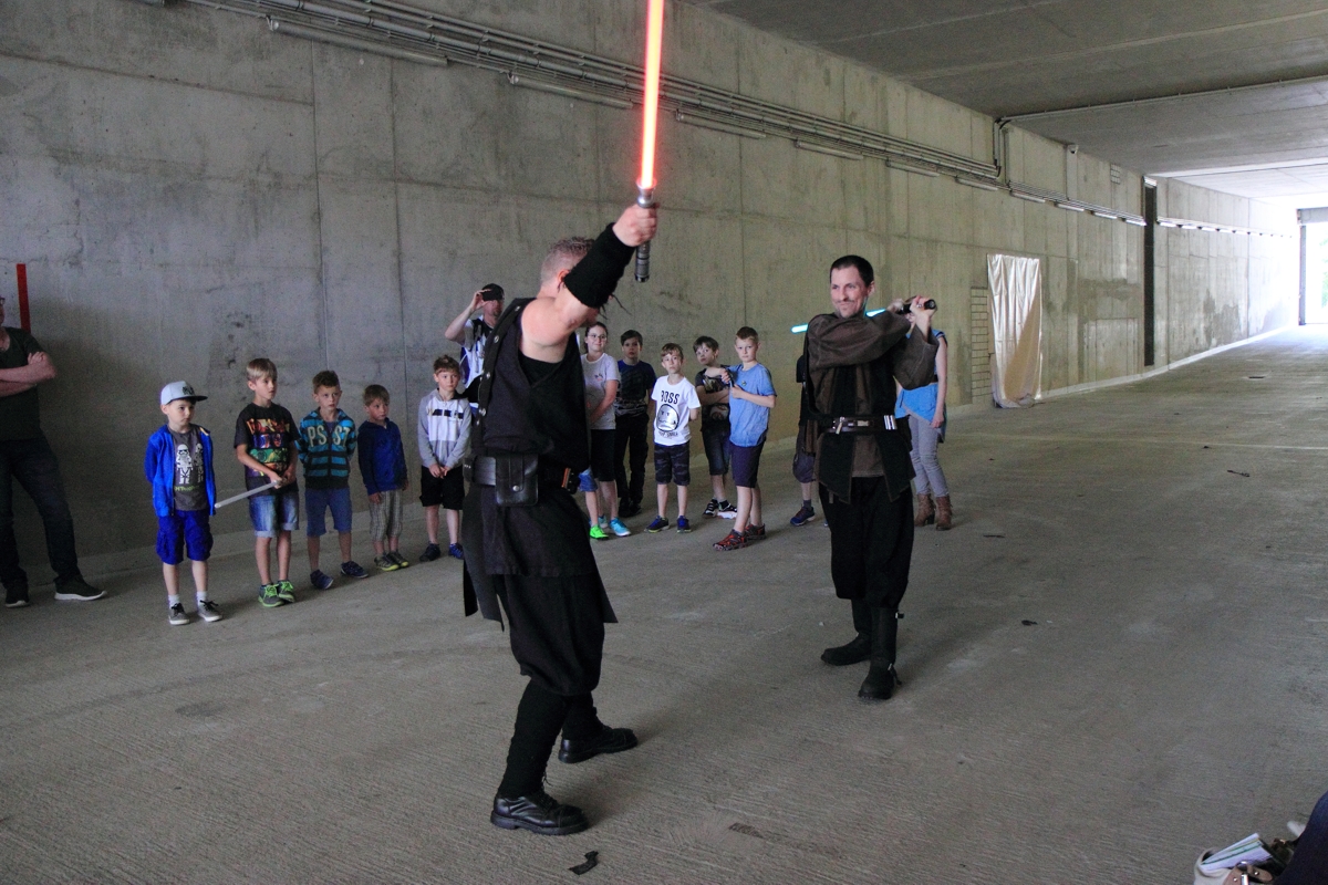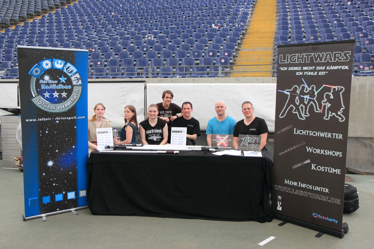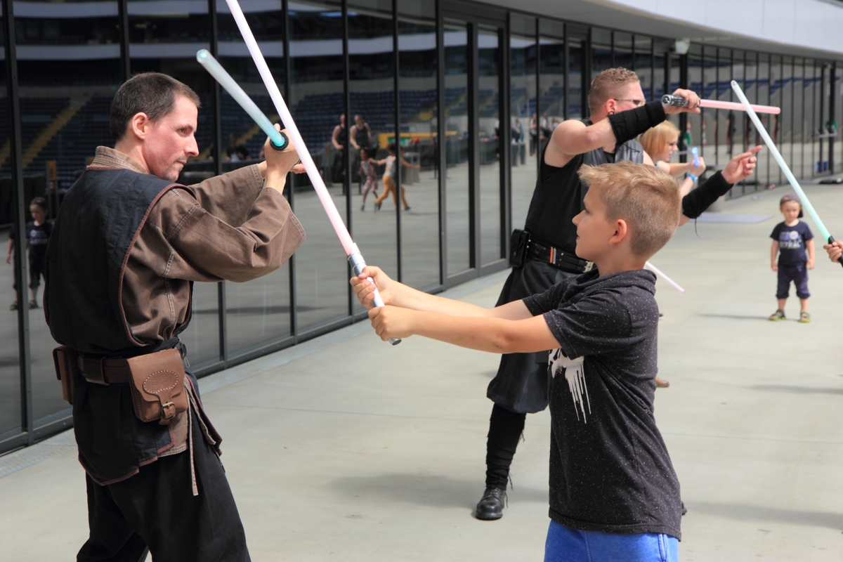 Am 21.05.2018 waren wir mit Lothars Sternenwelt und der 501st German Garrison auf das Festival4Family in die Frankfurter Commerzbank-Arena eingeladen. Gemeinsam mit Lothars Sternenwelt gestalteten wir einen kleinen Stand, an dem man sich über das Thema Lichtschwert informieren und sich zu den Workshops anmelden konnte. Im Wechsel boten wir zwei Workshops an in Lichtschwertkampf und -choreographie und Lothars Sternenwelt zwei Lichtschwertschulen. Die Nachfrage war enorm und innerhalb kurzer Zeit waren alle vier Workshops voll. Zu unser aller Freude war die Begeisterung der Teilnehmer,  gleich welchen Alters, groß und wir bekamen alle durchweg positives Feedback.