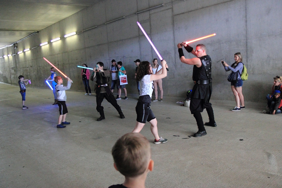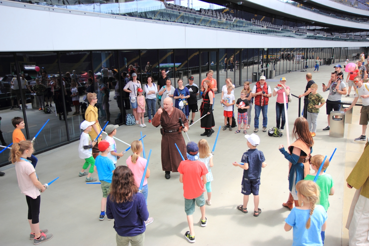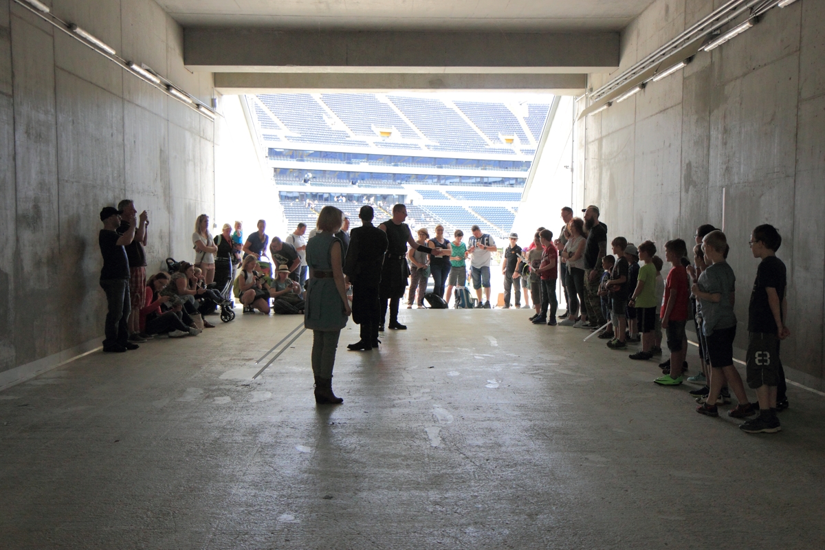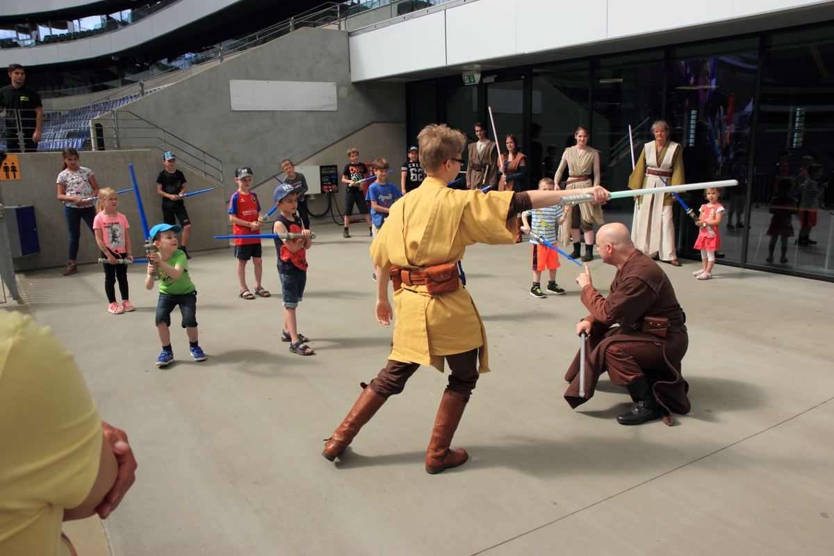 Am 21.05.2018 waren wir mit Lothars Sternenwelt und der 501st German Garrison auf das Festival4Family in die Frankfurter Commerzbank-Arena eingeladen. Gemeinsam mit Lothars Sternenwelt gestalteten wir einen kleinen Stand, an dem man sich über das Thema Lichtschwert informieren und sich zu den Workshops anmelden konnte. Im Wechsel boten wir zwei Workshops an in Lichtschwertkampf und -choreographie und Lothars Sternenwelt zwei Lichtschwertschulen. Die Nachfrage war enorm und innerhalb kurzer Zeit waren alle vier Workshops voll. Zu unser aller Freude war die Begeisterung der Teilnehmer,  gleich welchen Alters, groß und wir bekamen alle durchweg positives Feedback.