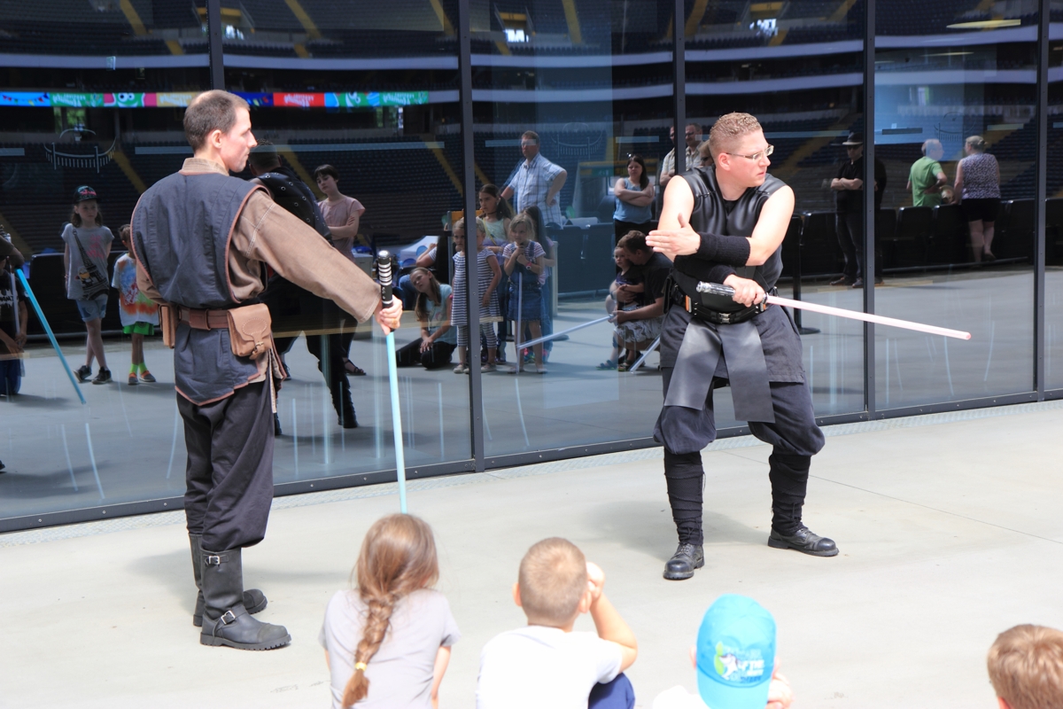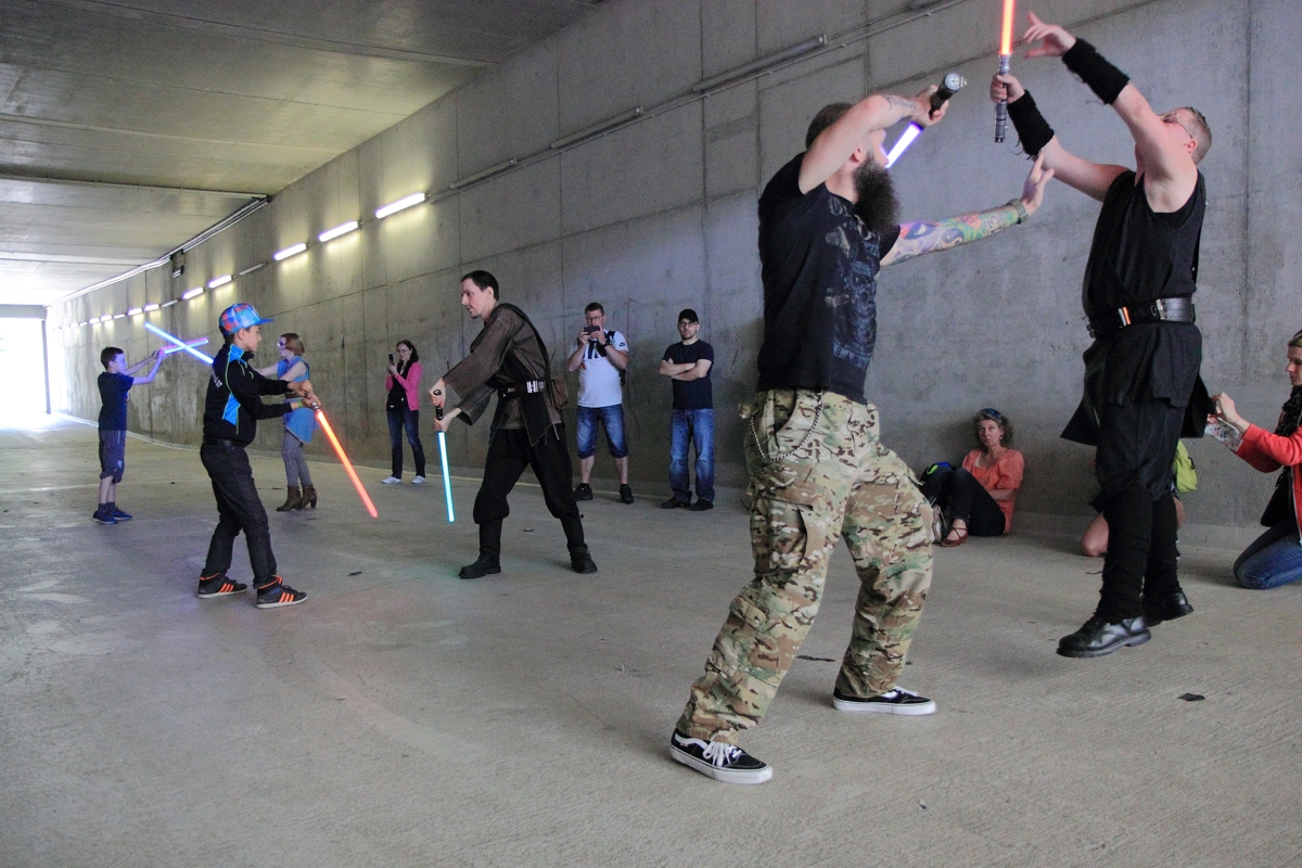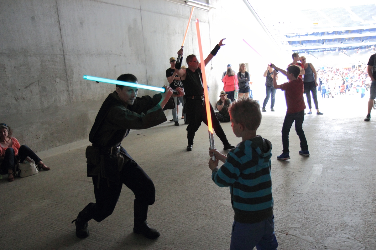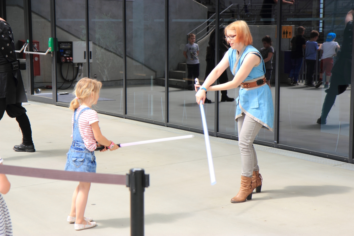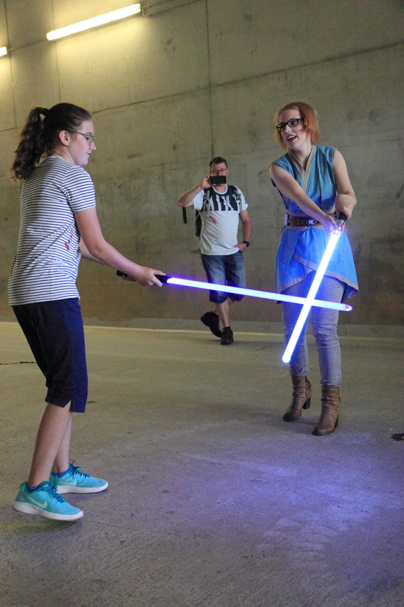 Am 21.05.2018 waren wir mit Lothars Sternenwelt und der 501st German Garrison auf das Festival4Family in die Frankfurter Commerzbank-Arena eingeladen. Gemeinsam mit Lothars Sternenwelt gestalteten wir einen kleinen Stand, an dem man sich über das Thema Lichtschwert informieren und sich zu den Workshops anmelden konnte. Im Wechsel boten wir zwei Workshops an in Lichtschwertkampf und -choreographie und Lothars Sternenwelt zwei Lichtschwertschulen. Die Nachfrage war enorm und innerhalb kurzer Zeit waren alle vier Workshops voll. Zu unser aller Freude war die Begeisterung der Teilnehmer,  gleich welchen Alters, groß und wir bekamen alle durchweg positives Feedback.