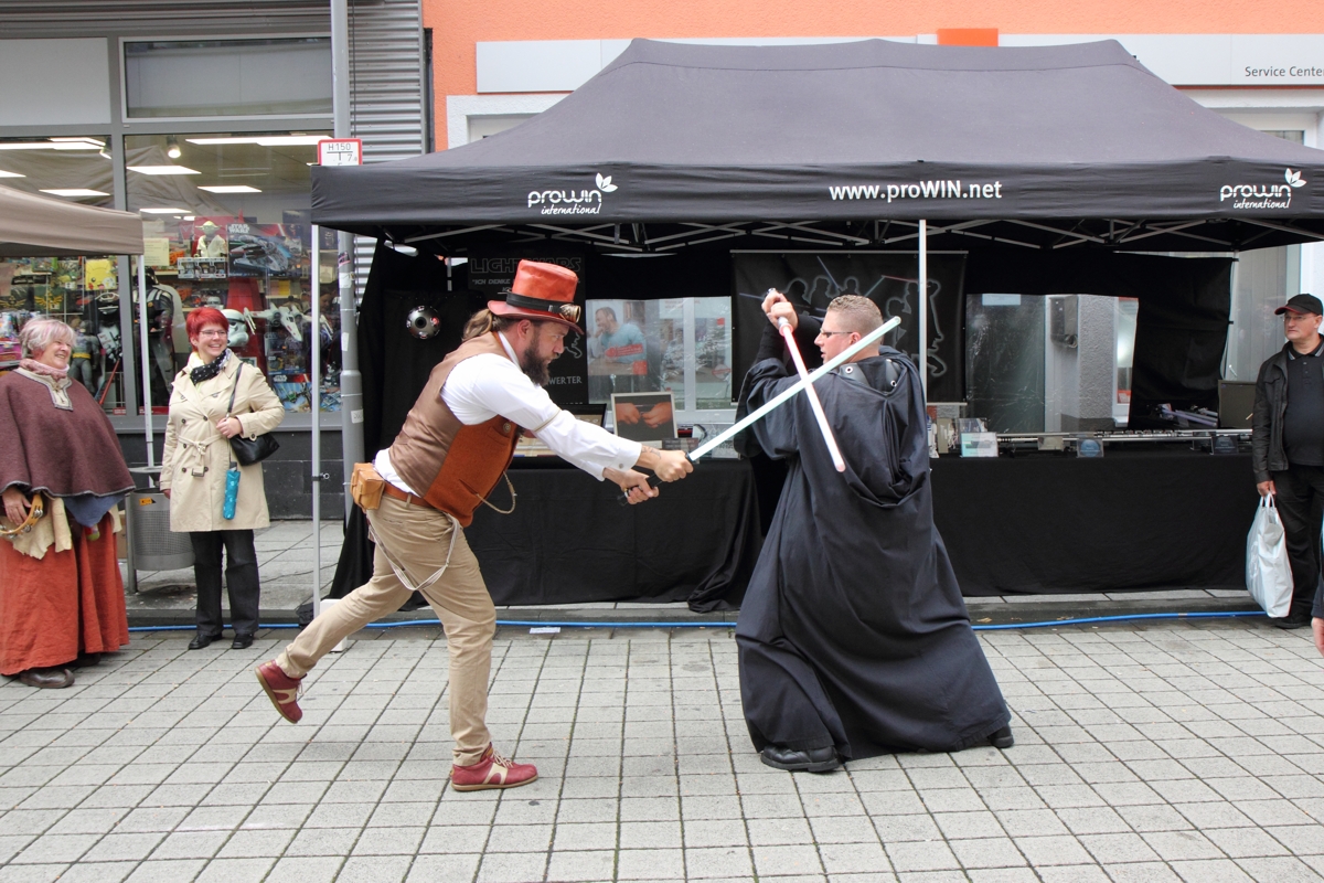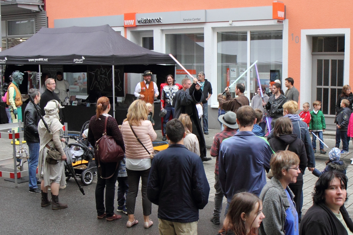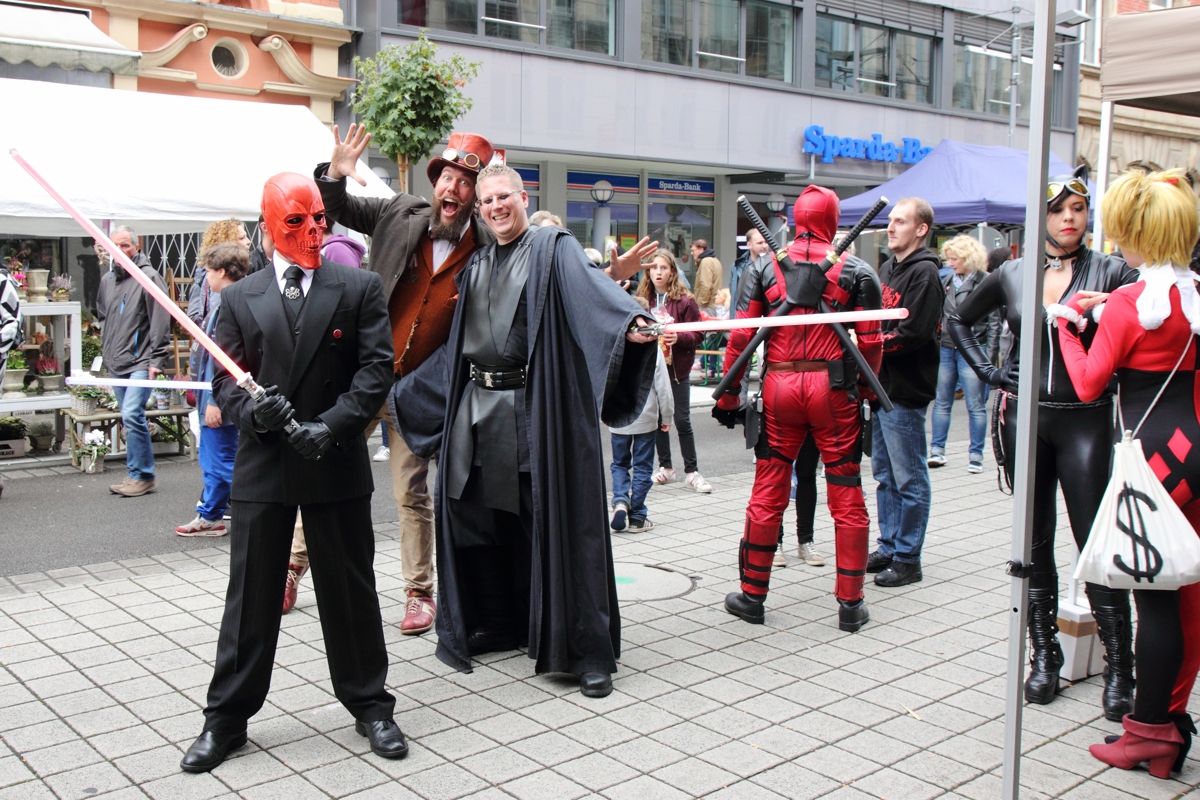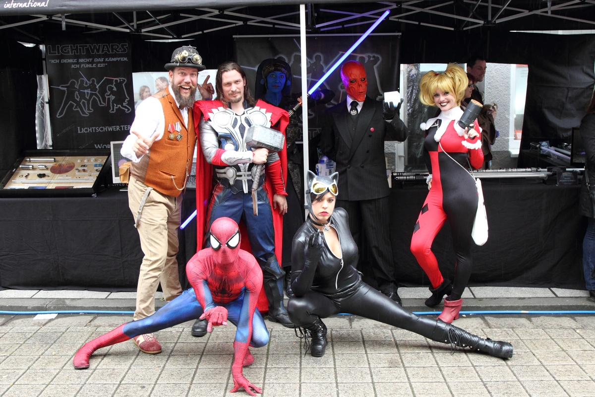 Abgesehen von einem kurzen Regenschauer hatten wir gutes Wetter und es pulsierte das Leben in der Straße. Die unterschiedlichsten Attraktionen sowie die phantastischen Kostüme aus der Comic- und Science Fiction-Welt begeisterten Besucher und Aussteller gleichermaßen.