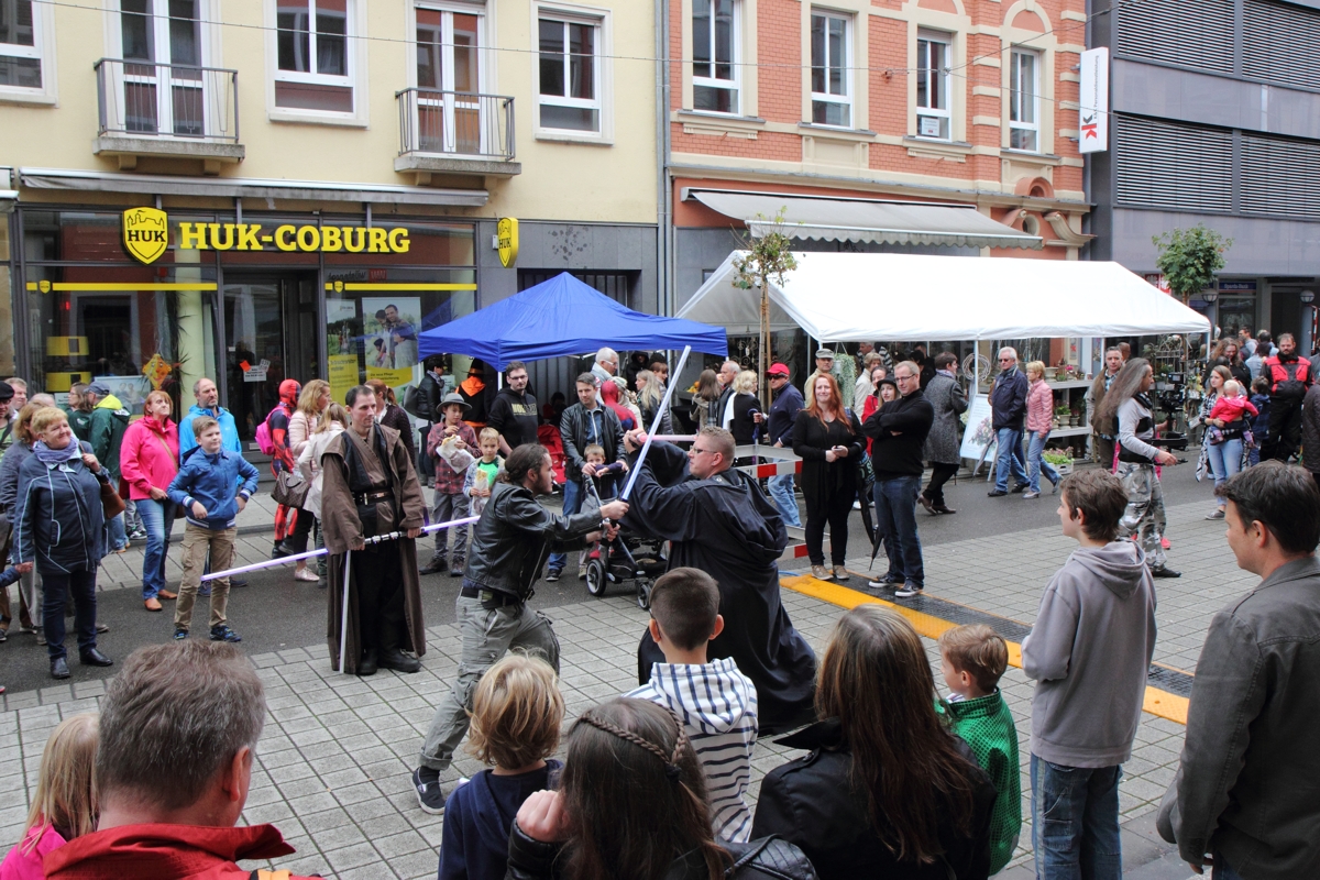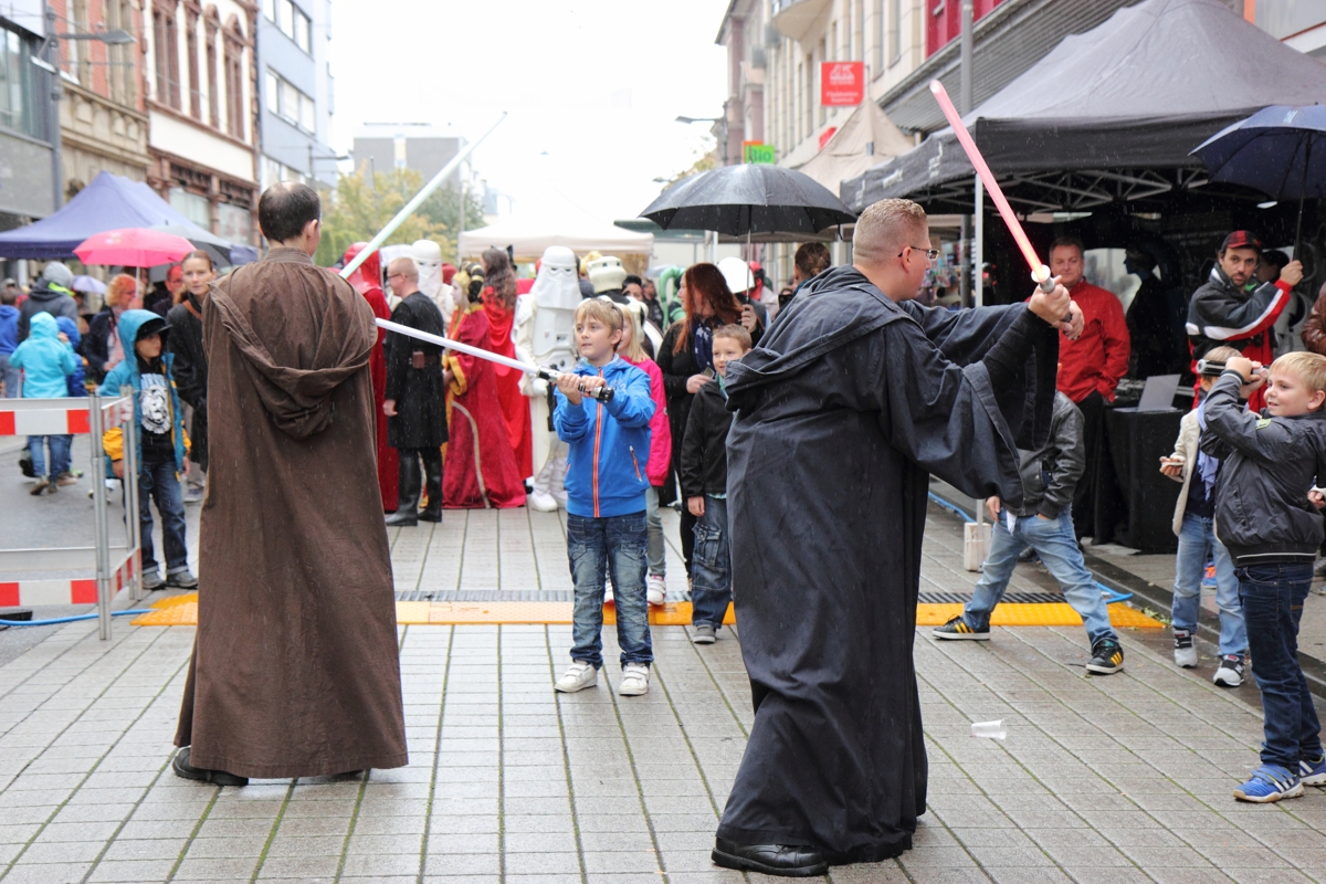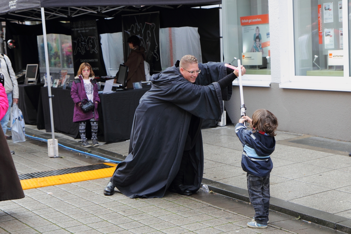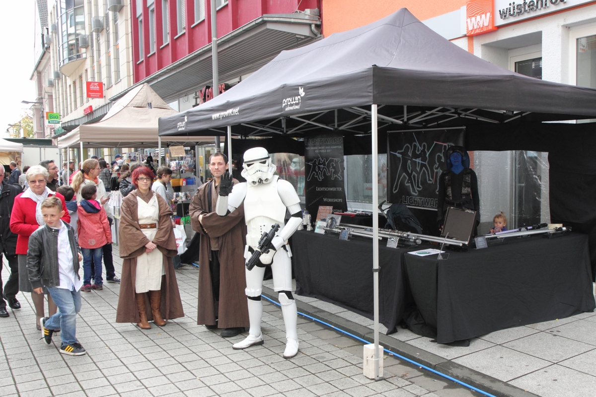 Abgesehen von einem kurzen Regenschauer hatten wir gutes Wetter und es pulsierte das Leben in der Straße. Die unterschiedlichsten Attraktionen sowie die phantastischen Kostüme aus der Comic- und Science Fiction-Welt begeisterten Besucher und Aussteller gleichermaßen.