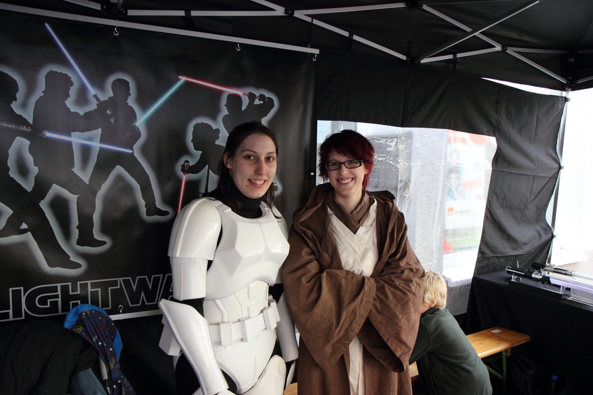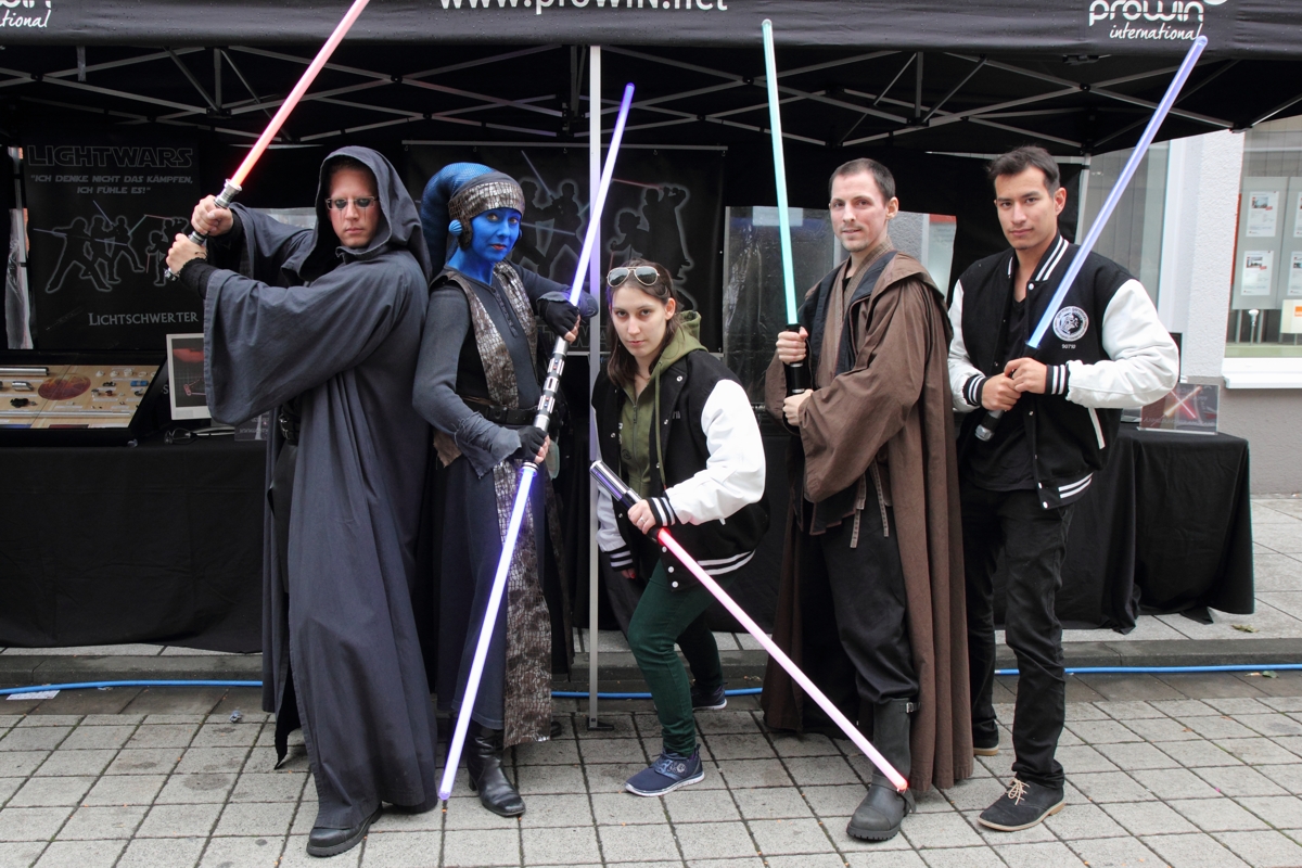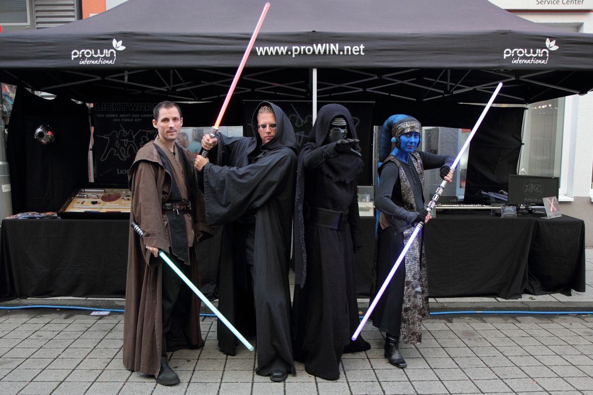 An unserem Stand direkt neben dem X-Comics testeten nicht nur junge Padawane und Sith-Schüler/innen ihr Können an unserer Trainingskugel. Auch Deadpool, Red Skull und Catwomen trainierten ihre Reflexe und gaben uns die Ehre. Der Lichtschwertkampf mit dem Zauberkünstler Kalibo, den wir neben vielen anderen Lichtschwertfans unterweisen durften, war ebenfalls ein Highlight für uns.