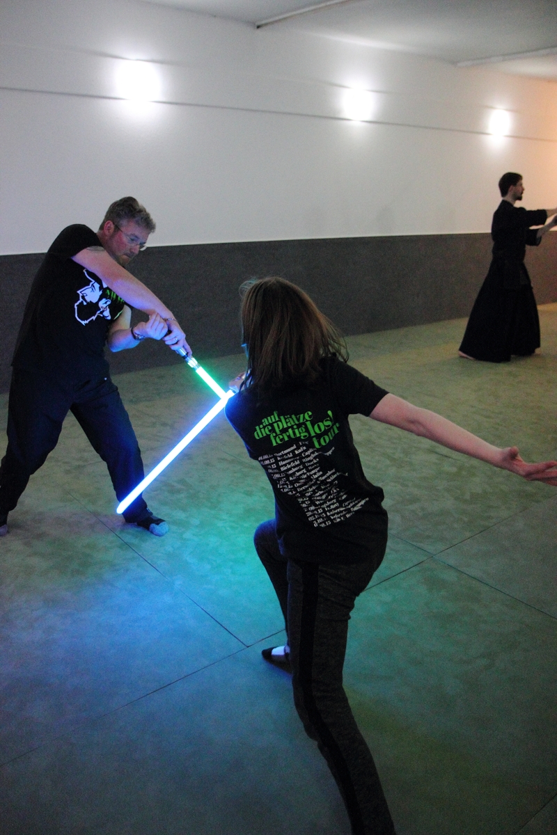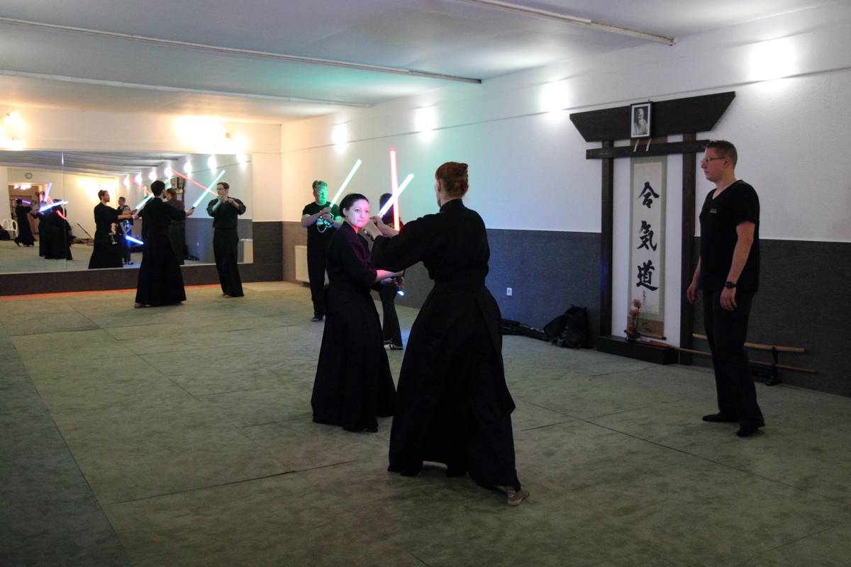 Am Samstag dem 11.11.2017 trafen wir uns mit Mitgliedern der Kendô-Abteilung des ATV Dudweiler zu einem gemeinsamen Training. Als Star Wars Fans bestand hier großes Interesse am Erlernen von Lichtschwertchoreographien während wir sehr auf die japanische Schwertkampfkunst des Kendô gespannt waren. Das Sakura Dojo bot für unser gemeinsames Vorhaben nicht nur die passenden Räumlichkeiten sondern auch die hierfür notwendige respektvolle Atmosphäre.