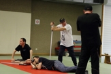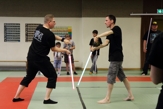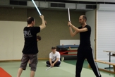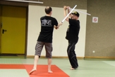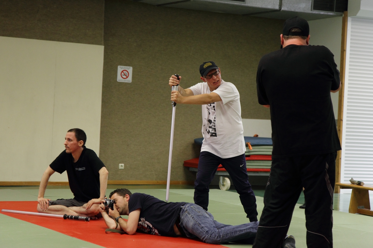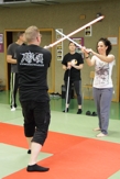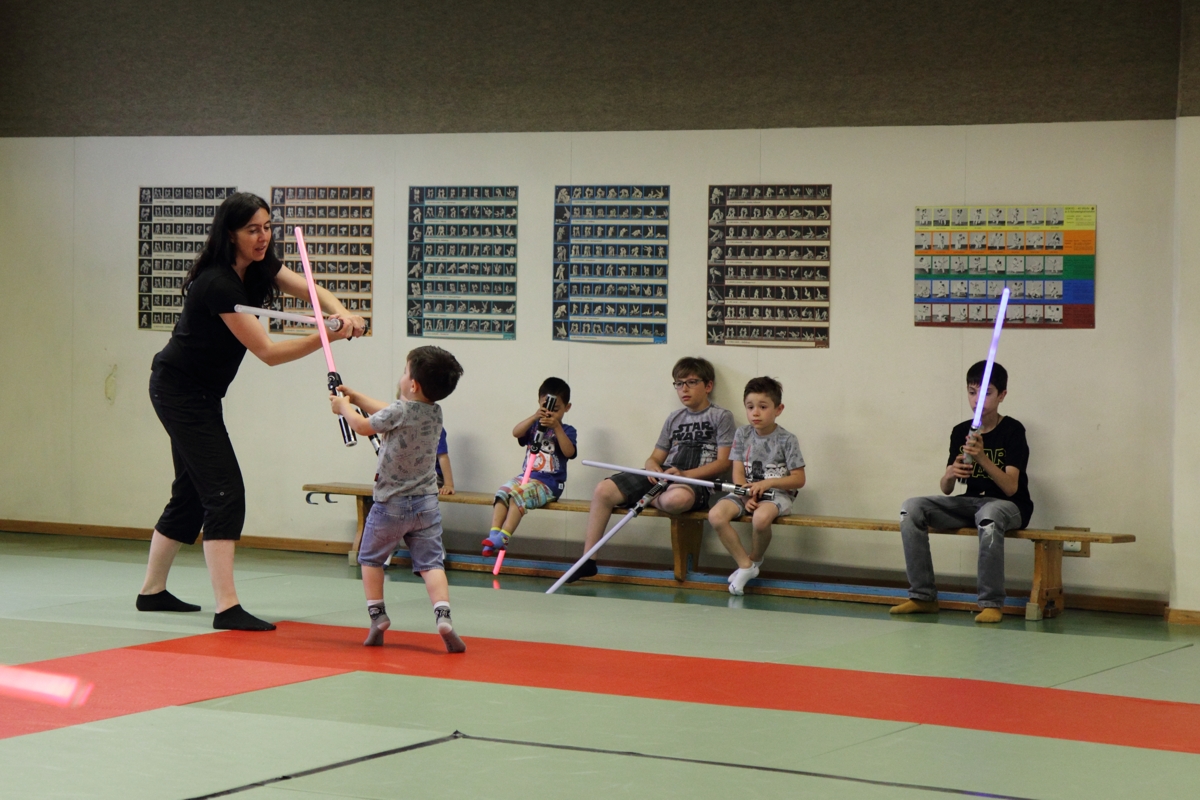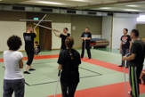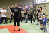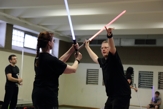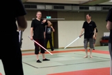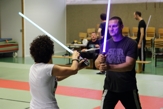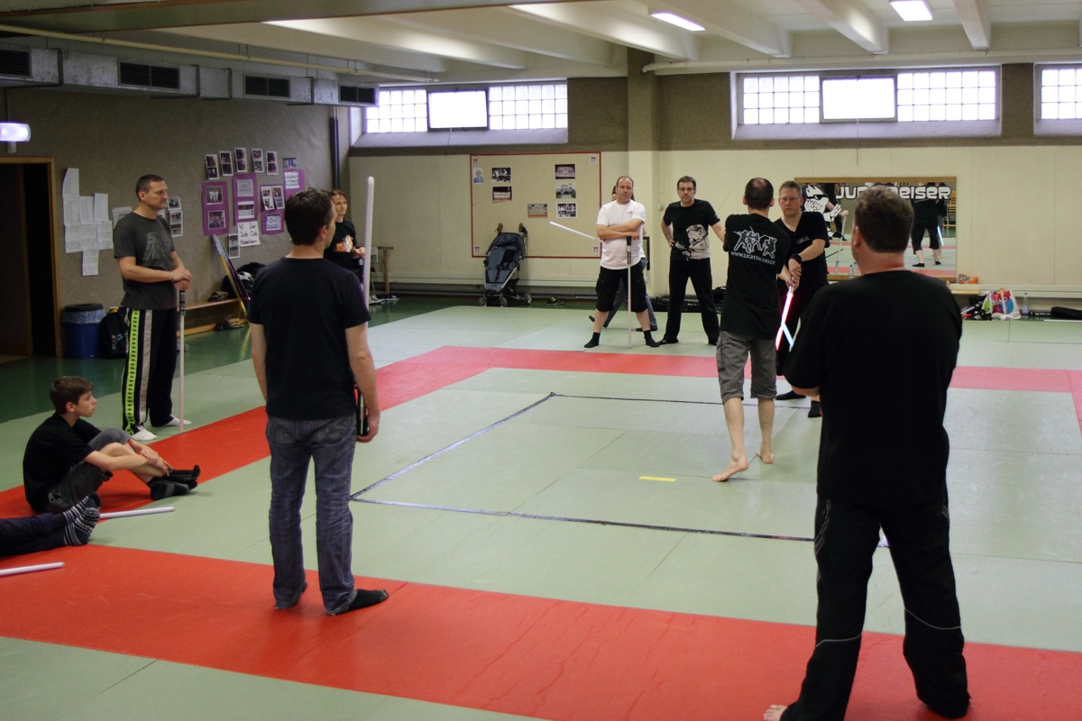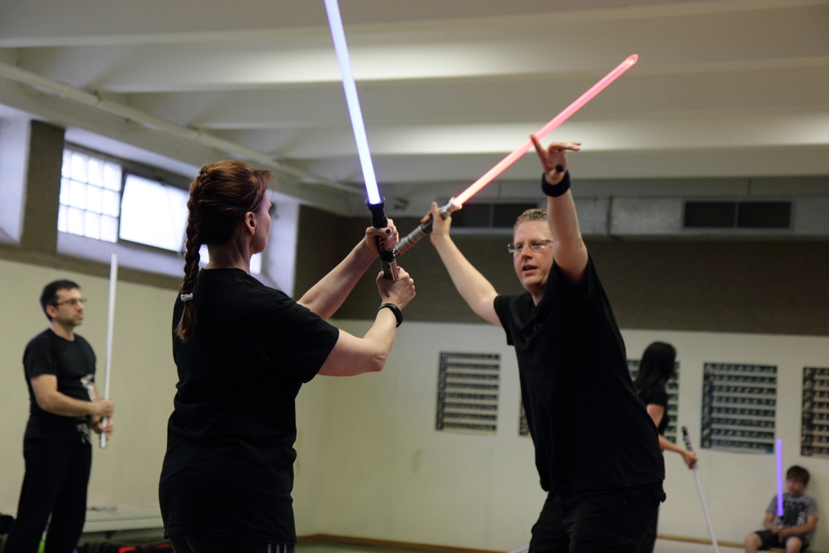 Nach einer kleinen Aufwärmphase starteten wir das Lichtschwerttraining mit unserem Grundlagenworkshop. Nach fast zwei Stunden gab es dann erst einmal eine Verschnaufpause in der wir reichlich mit leckerem Gebäck und Getränken versorgt wurden. Anschließend startete die zweite Runde mit weiterführenden und vertiefenden Übungen. Die Judohalle war die ganze Zeit über erfüllt mit den Swing- und Clashsounds der Lichtschwerter der Teilnehmer. Wo man hinsah wurde mit viel Spaß, aber auch Ehrgeiz und Konzentration, gefochten. Ein Anblick, der für jeden Lichtschwertfan wohl kaum zu vergessen ist.