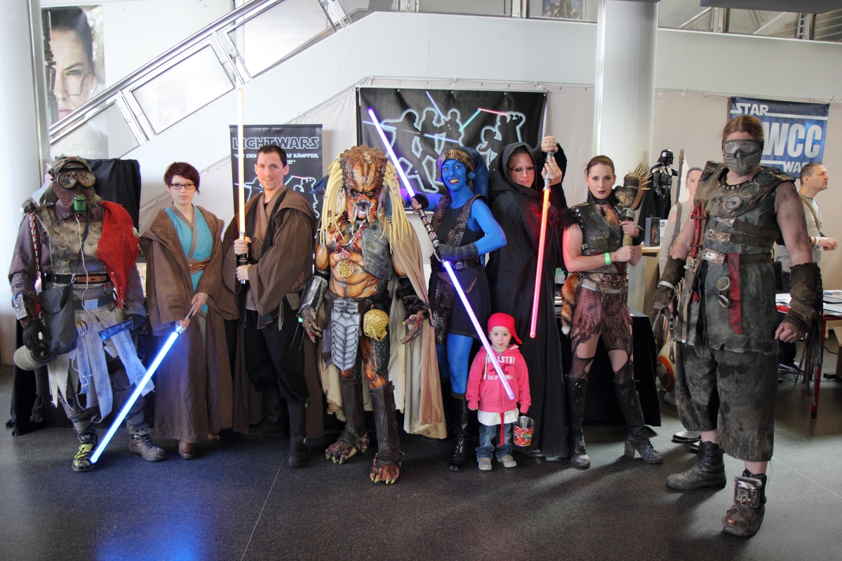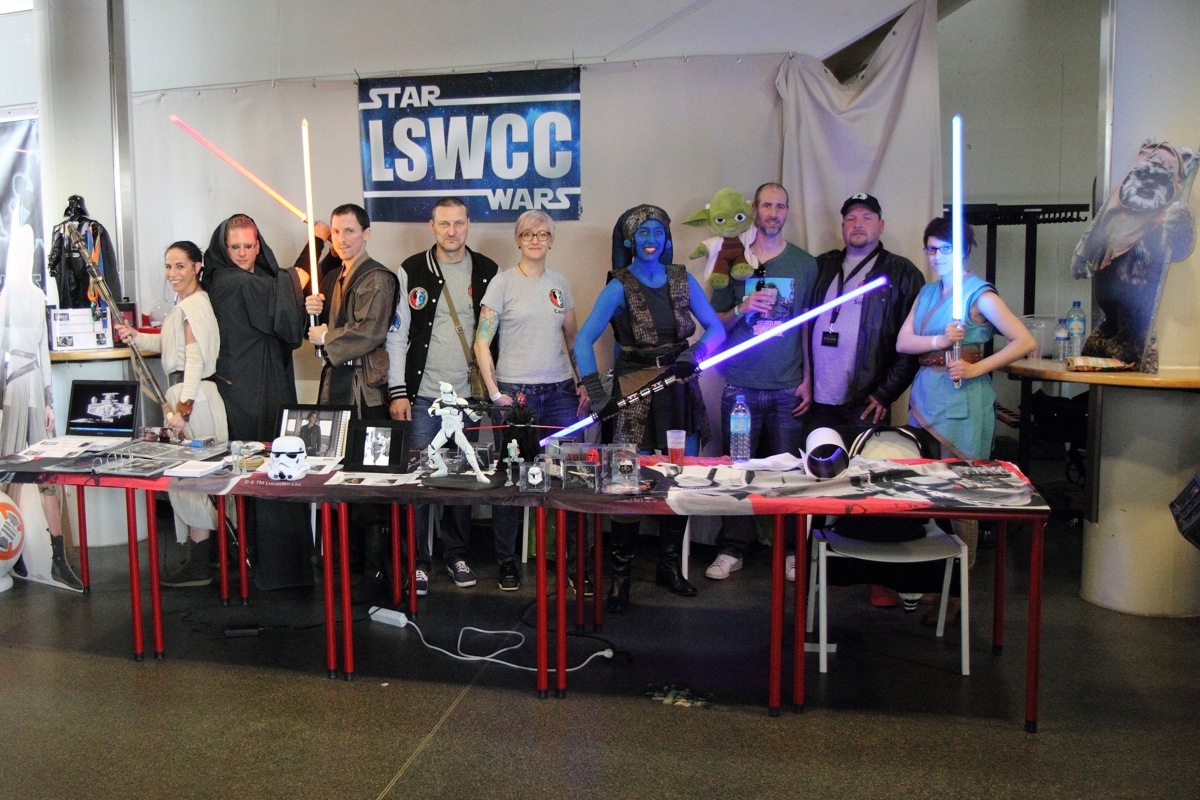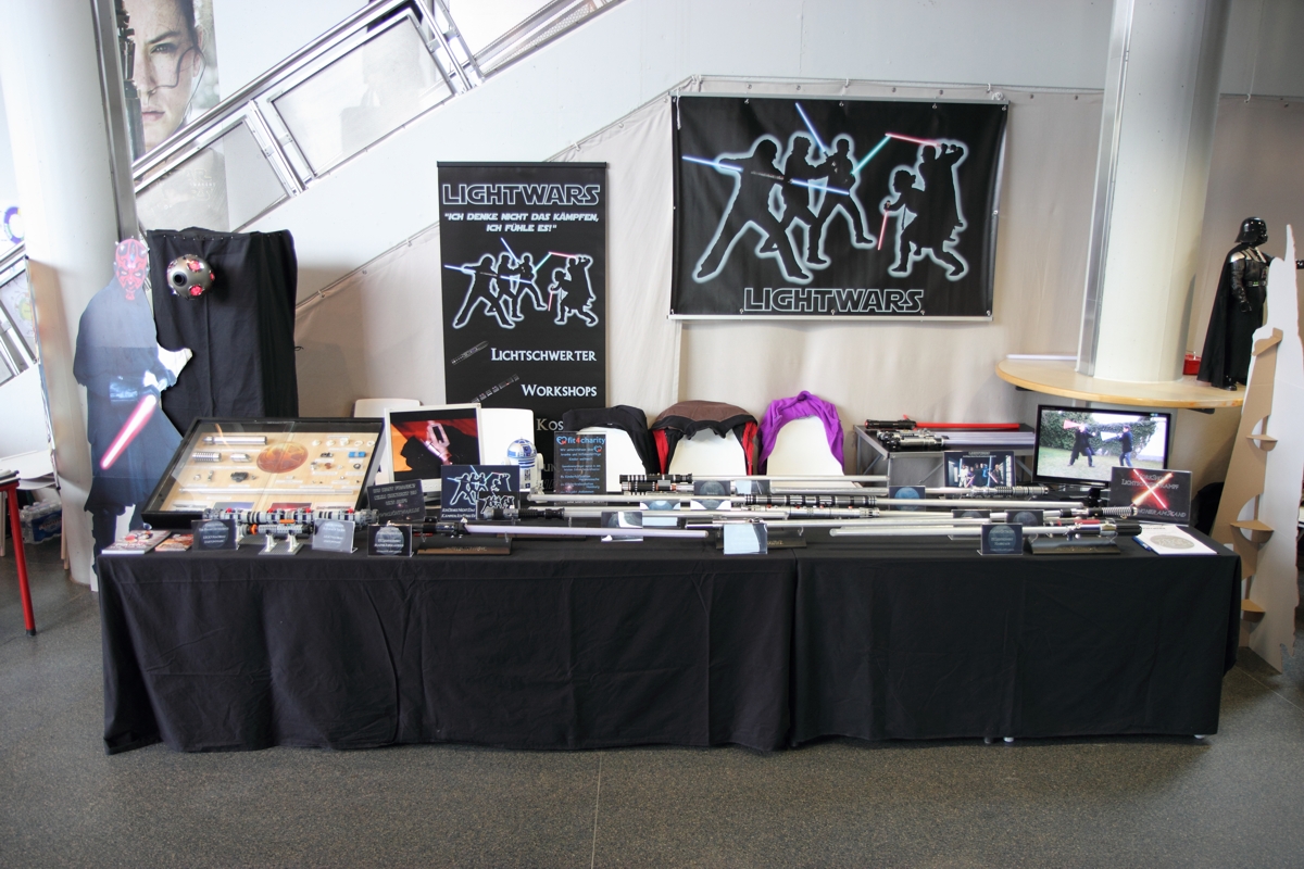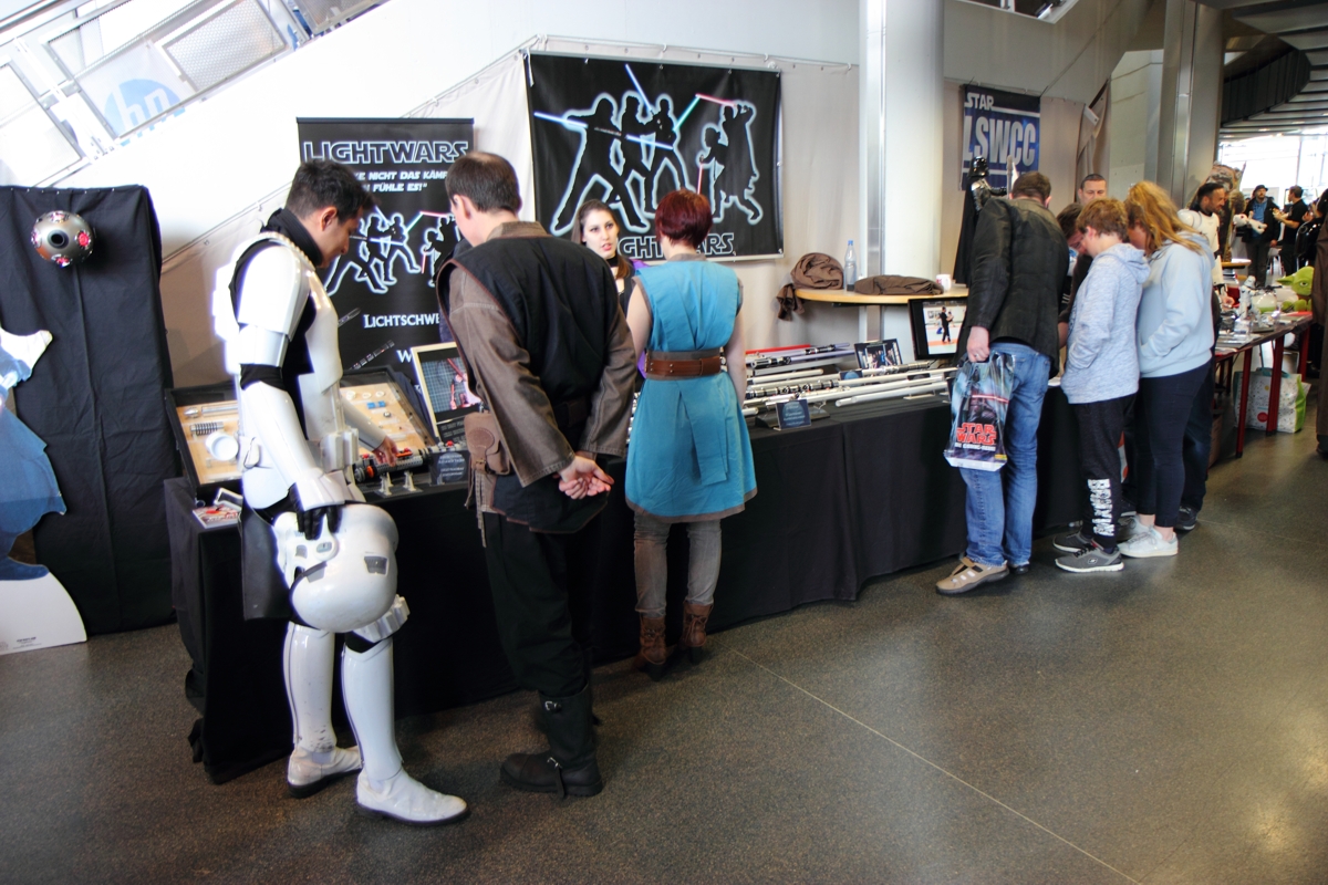 Wir waren mit unserem Stand vor Ort und freuten uns riesig darüber, dass sich dieser im Erdgeschoss neben unseren Freunden des LSWCC und der 501st befand. Gemeinsam gab es immer genug zum Erzählen und Lachen. Zudem führte dies zum Entstehen eines imposanten und zusammenhängenden Bereiches, der dem Star Wars Thema gewidmet war.