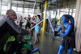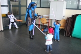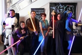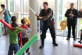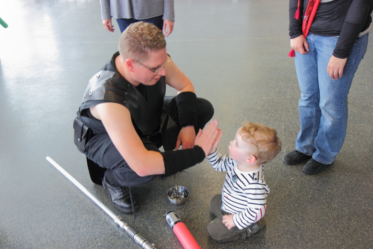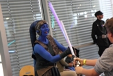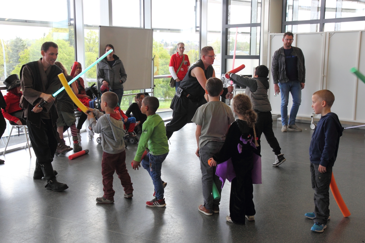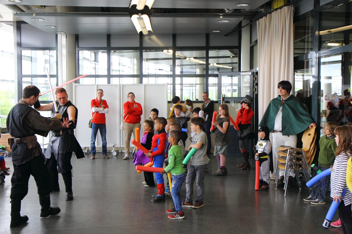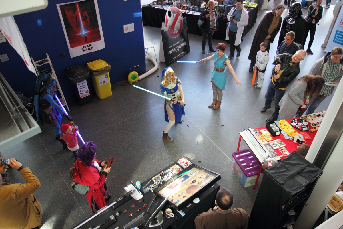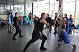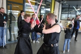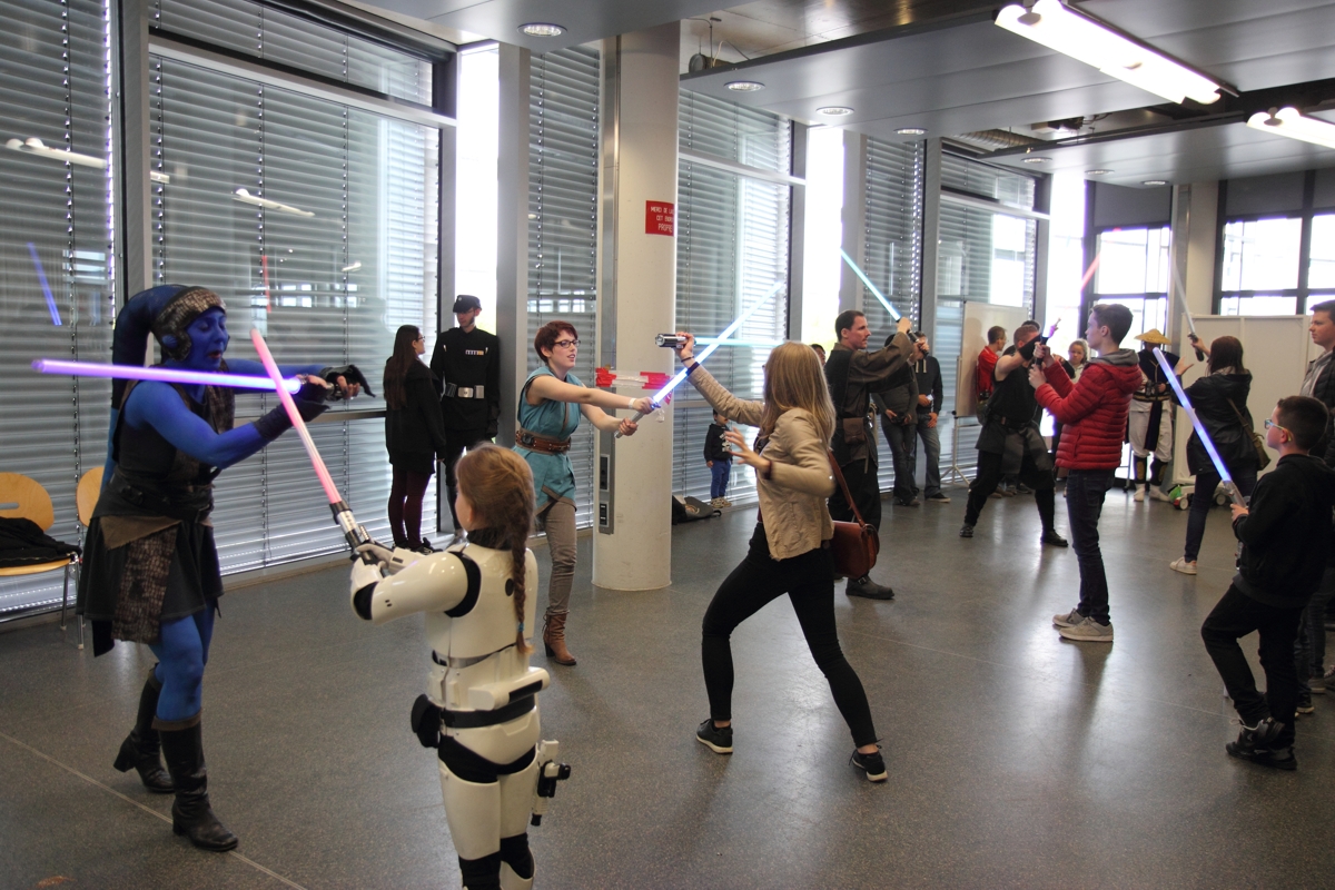 Neben unseren üblichen Auslagen, der Trainingskugel, dem Schaukasten sowie unseren Infovideos zum Schwertbau und Lichtschwertkampf, hatten wir drei neue Schwerter mit im Gepäck, darunter auch endlich Bevardis, das Schwert von TK. In insgesamt drei Workshops, gaben wir Unterricht im Lichtschwertkampf und der Lichtschwertchoreographie, zwei davon samstags und einen sonntags. Bei einem der Samstags-Workshops handelte es sich wieder um den legendären Poolnudel–Workshop, in dem die Kleinsten ihre selbstgebauten Lichtschwerter ausprobieren durften. Tatkräftige Unterstützung während der LuxCon vom Auf-und Abbau unseres Standes über die Beratung von Besuchern in Sachen Lichtschwerter bis hin zur Durchführung der Workshops erhielten wir durch Siara. Sie hat erstmals in allen drei Workshops eine eigene Teilnehmergruppe unterrichtet.