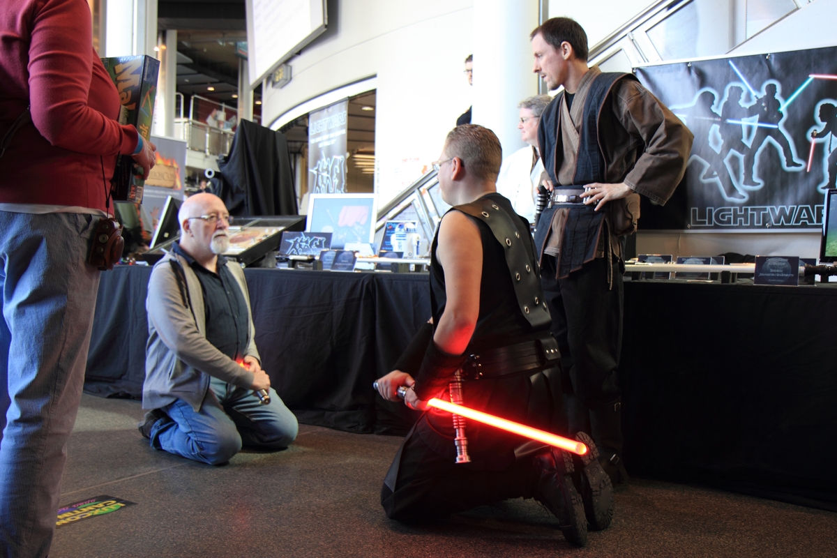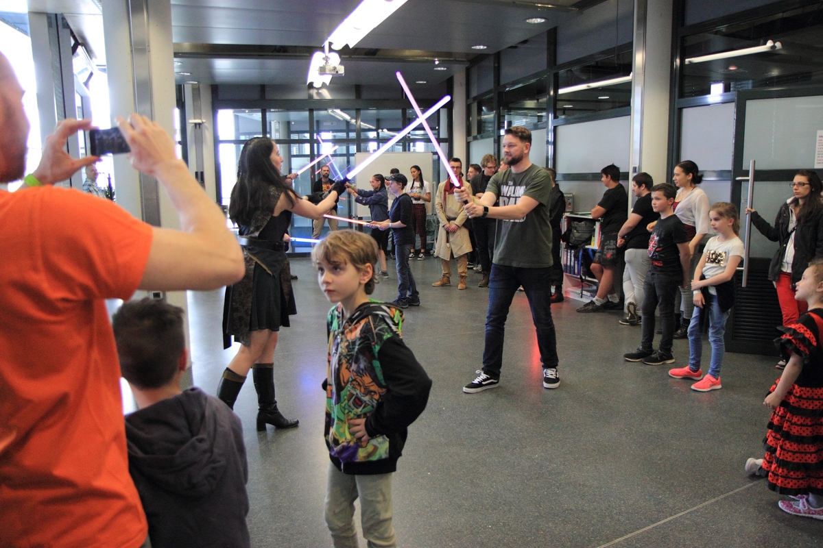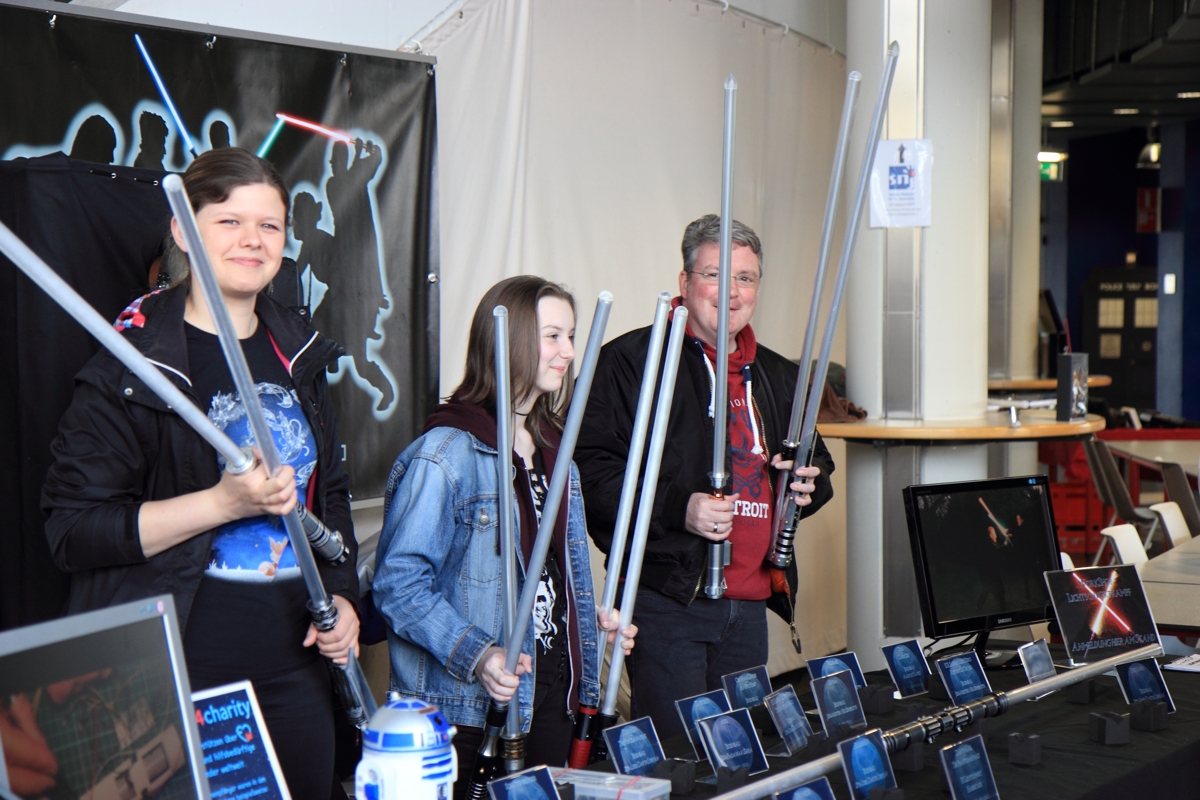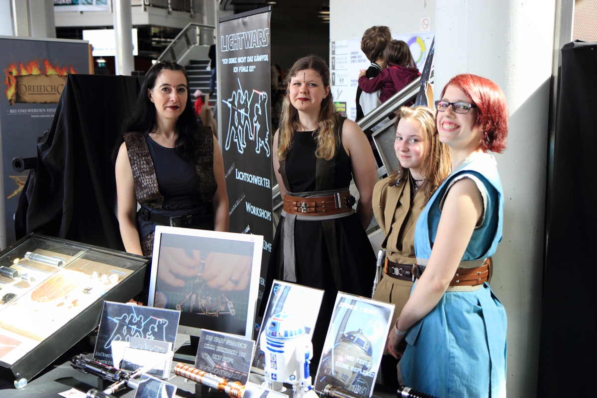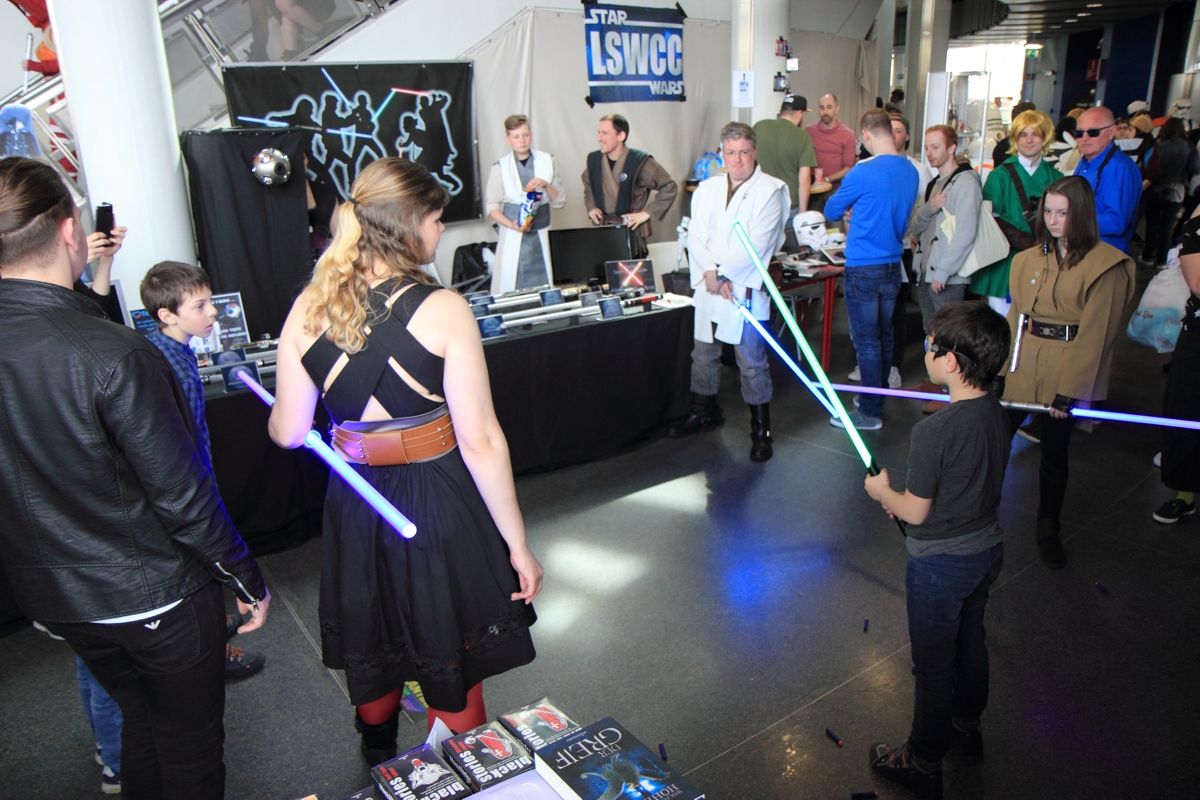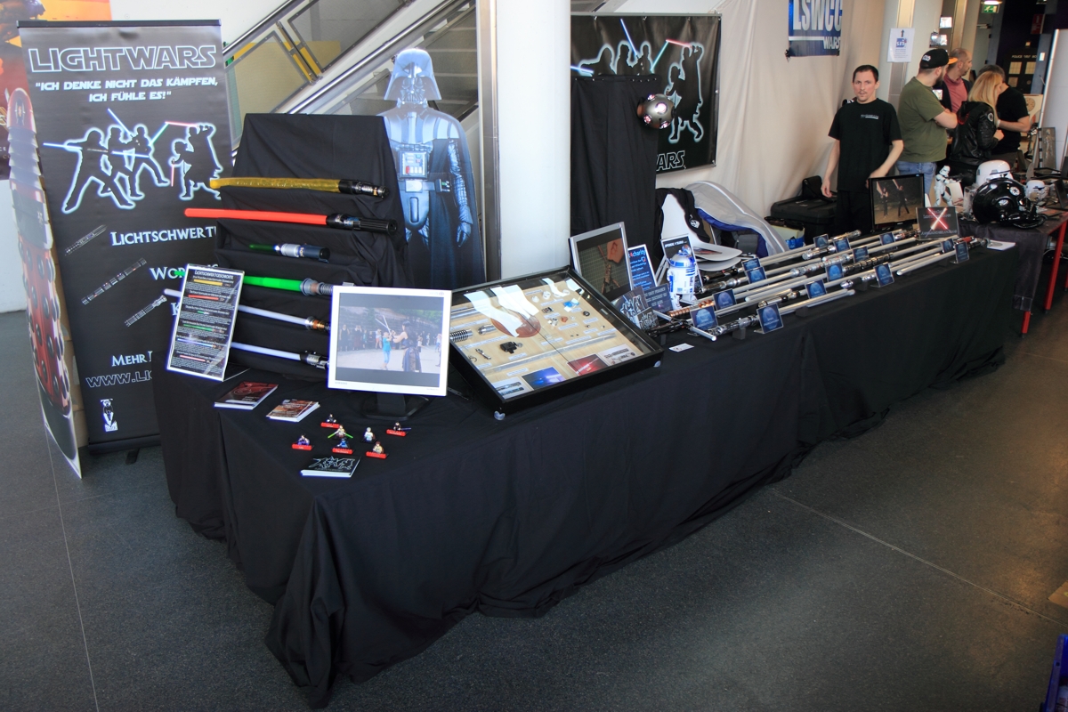 Gemeinsam mit dem LSWCC, dem Jakku Outpost und der 501st gestalteten wir den Star Wars Fan Bereich. Mit neuen Schwertern im Gepäck, unserer Trainingskugel sowie den verschiedenen Aufstellern und Auslagen am Stand beantworteten wir den interessierten Besuchern bereitwillig ihre Fragen rund um das Thema Lichtschwert.