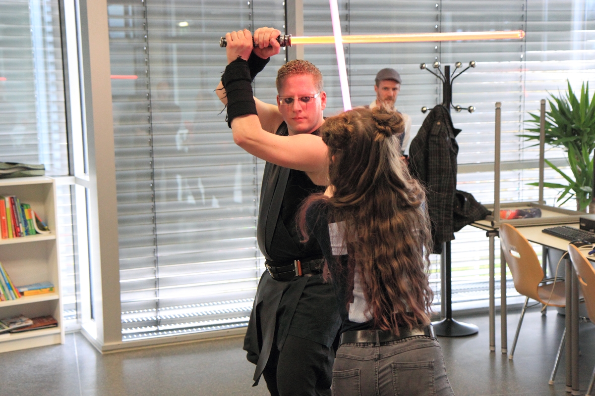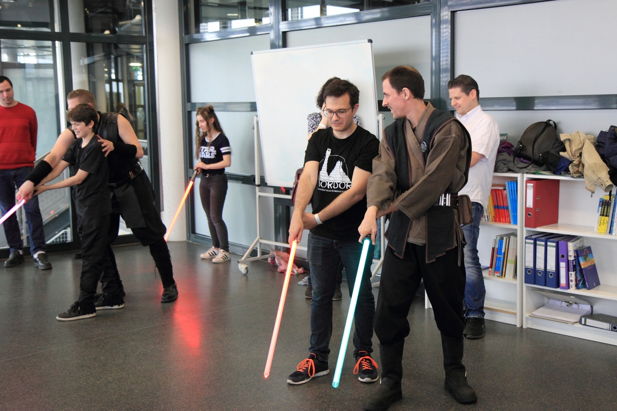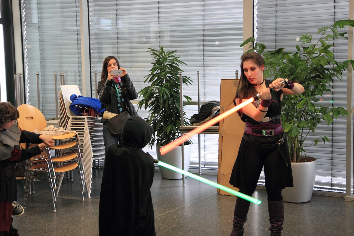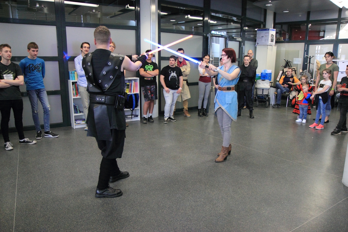 Auch boten wir über das Wochenende drei Workshops zum Thema Lichtschwertkampf und -choreographie an. Einer davon war wieder der legendäre Poolnudel-Workshop, in dem die jungen Padawane und Sith-Schüler ihre zuvor gebauten Lichtschwerter austesten konnten. Voller Eifer und Leidenschaft waren sowohl die großen als auch die kleinen Lichtschwertfans bei der Sache und hatten genauso großen Spaß in den Workshops wie wir.