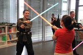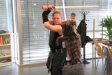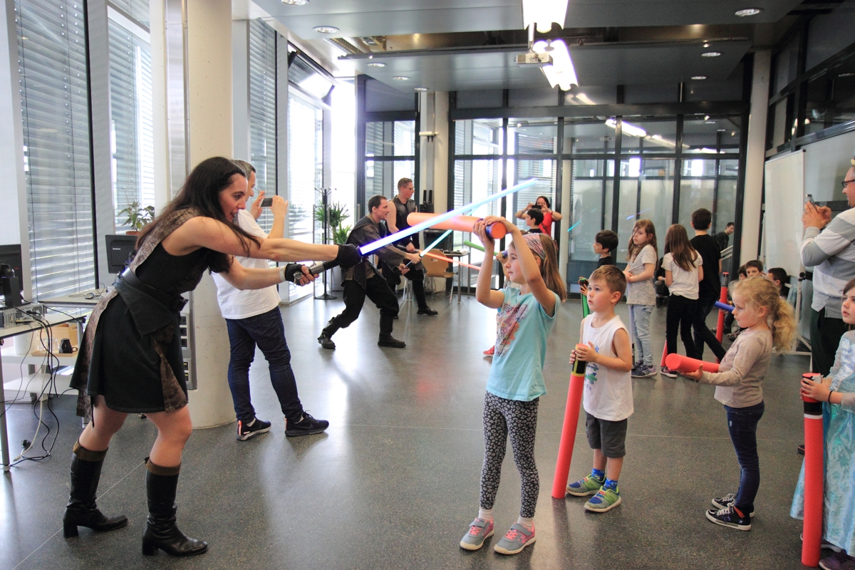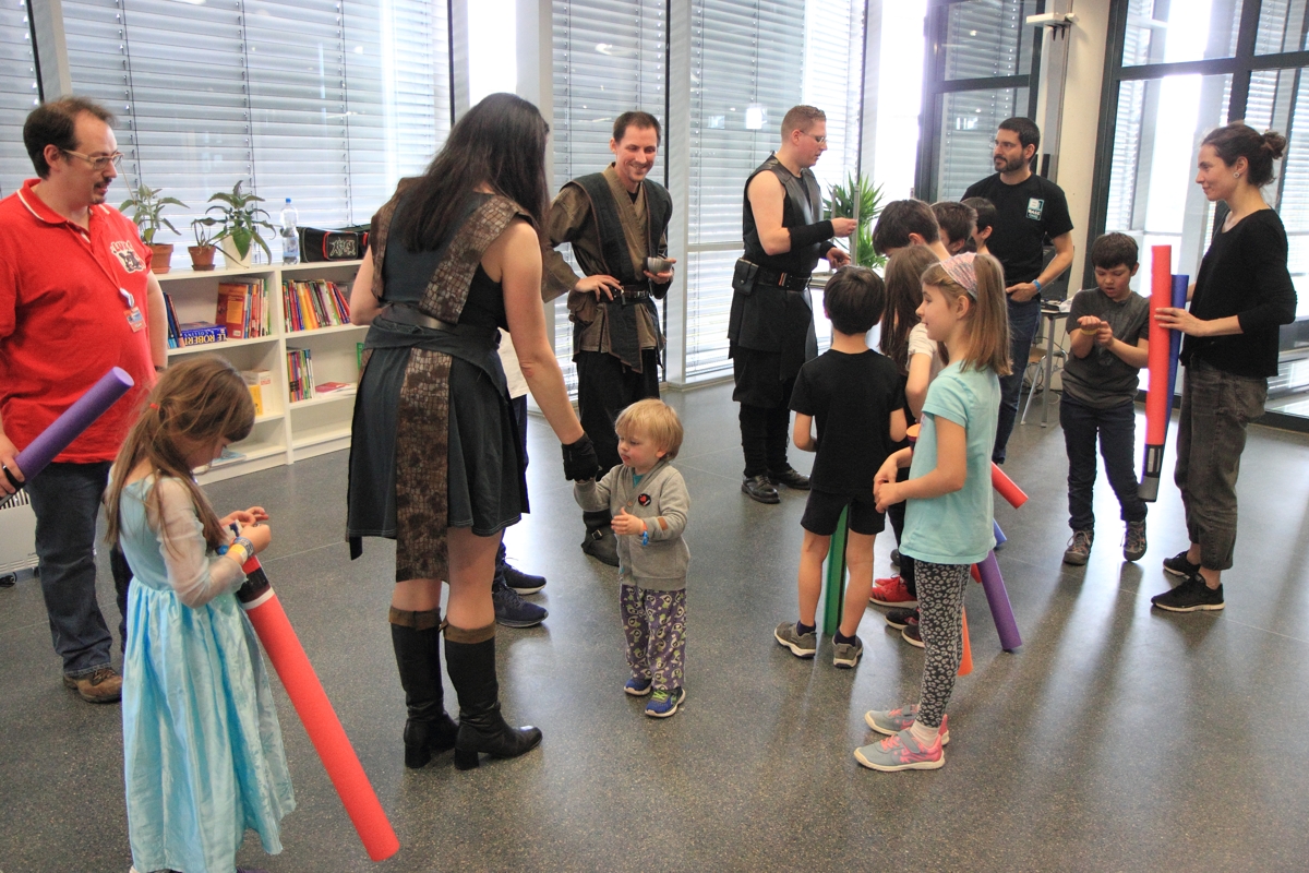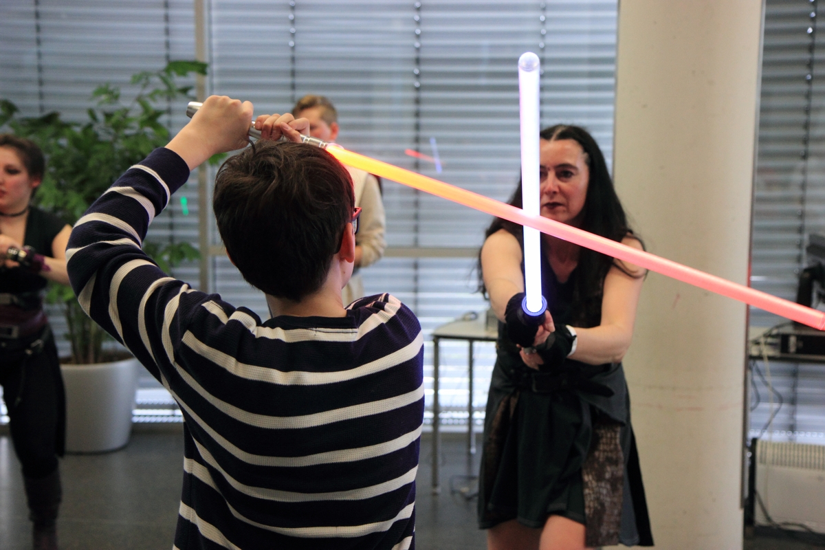 Auch boten wir über das Wochenende drei Workshops zum Thema Lichtschwertkampf und -choreographie an. Einer davon war wieder der legendäre Poolnudel-Workshop, in dem die jungen Padawane und Sith-Schüler ihre zuvor gebauten Lichtschwerter austesten konnten. Voller Eifer und Leidenschaft waren sowohl die großen als auch die kleinen Lichtschwertfans bei der Sache und hatten genauso großen Spaß in den Workshops wie wir.