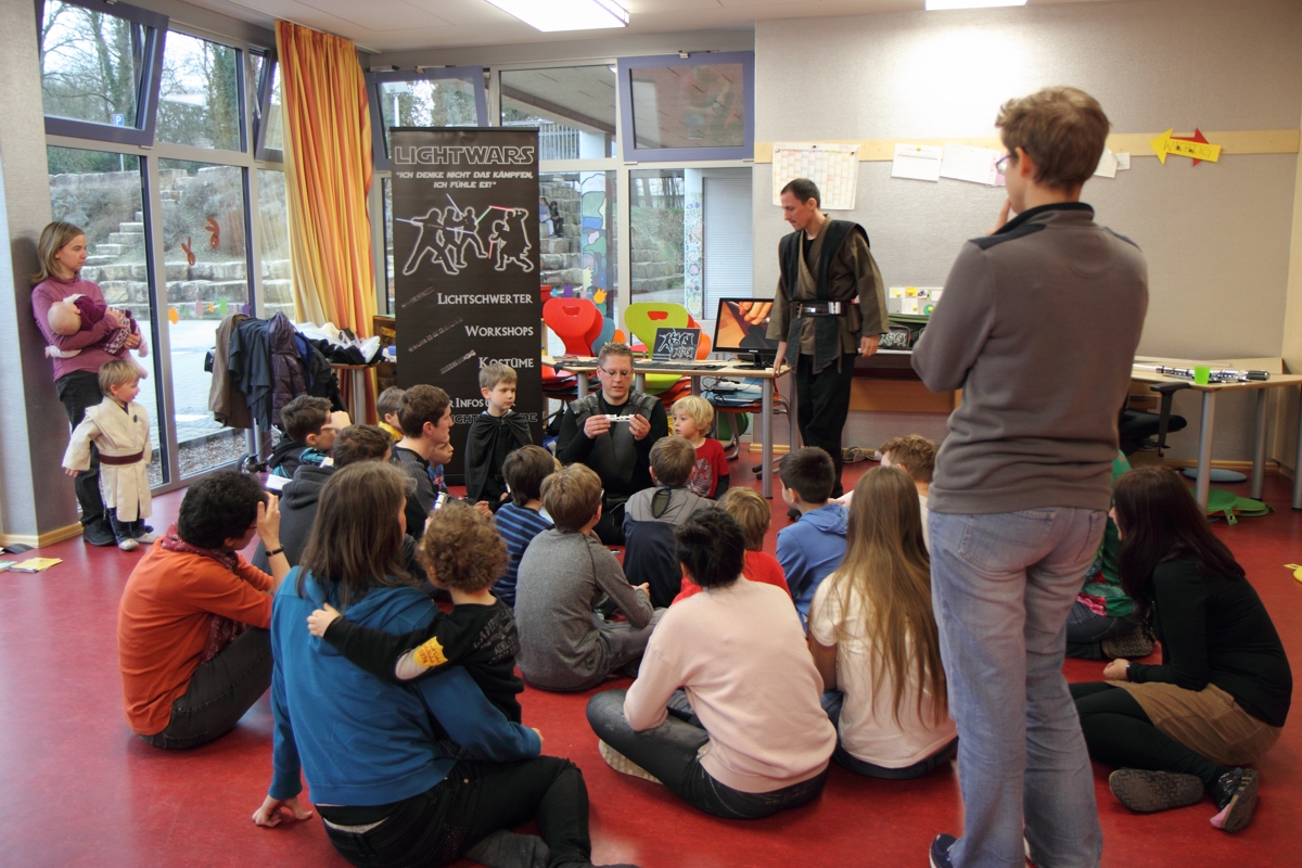Am 18.03.2017 waren die Räumlichkeiten der Freiwilligen Ganztagsschule der Schloßparkschule Geislautern erfüllt von den Klängen und Farben unserer Lichtschwerter. Die Regionalgruppe Warndt der "Deutschen Gesellschaft für das hochbegabte Kind" (DGhK) hatte das Lightwars Team zu ihrem monatlichen Spielenachmittag eingeladen.