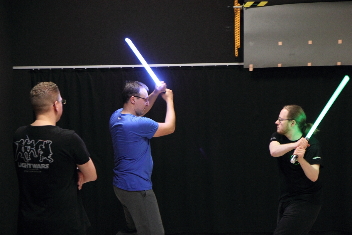 Der erste Workshop in Lichtschwertkampf und -choreographie im neuen Jahr war für das Lightwars Team zugleich auch etwas Besonderes, denn wir hatten Besuch von einem Mitglied einer befreundeten Lichtschwertgruppe. Wir freuten uns riesig darüber Markus vom Team Saberproject begrüßen zu dürfen. Während des Workshops und auch danach tauschte man gemeinsam Erfahrungen aus und es wurde viel über Lichtschwertkampf und -choreographie gefachsimpelt.