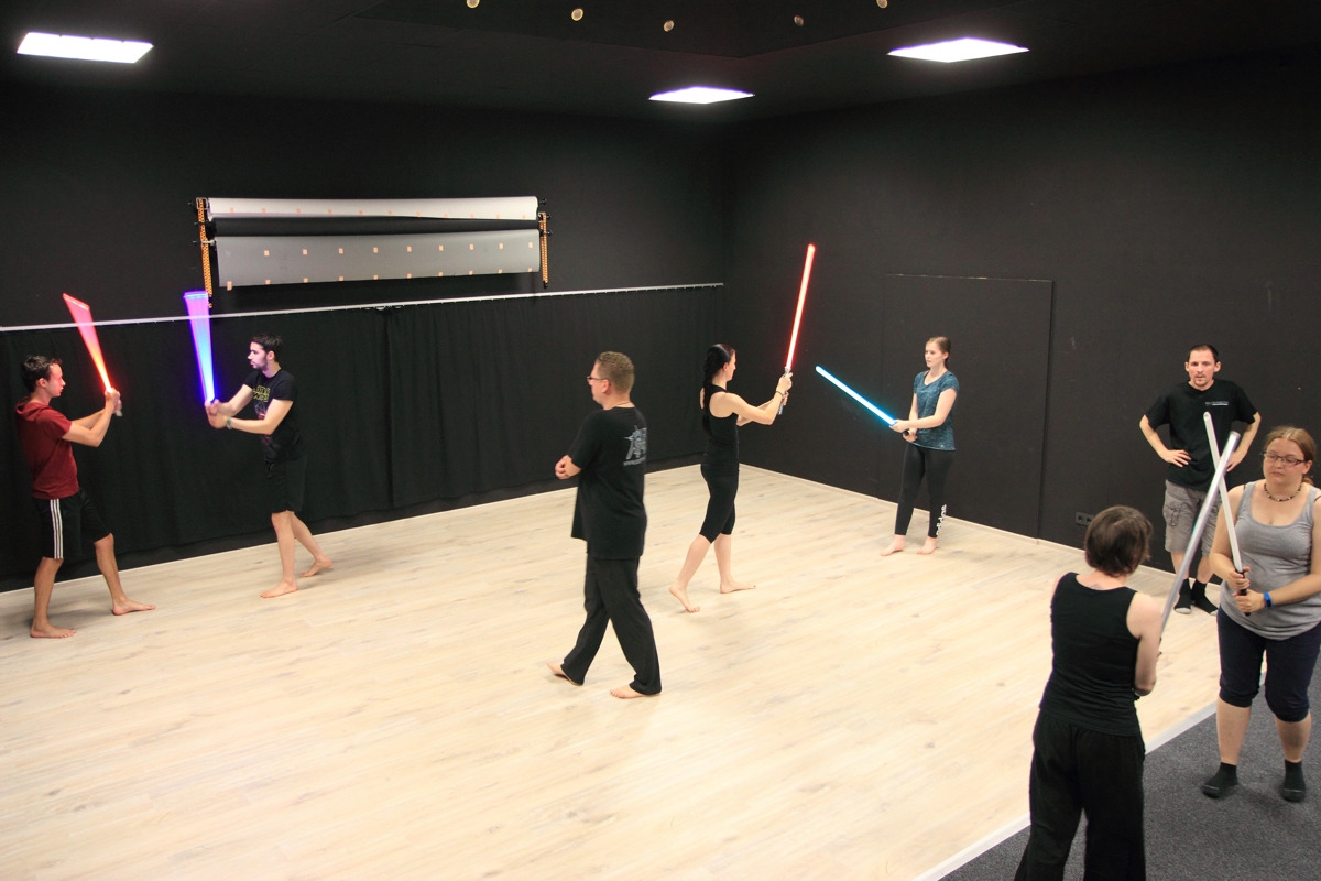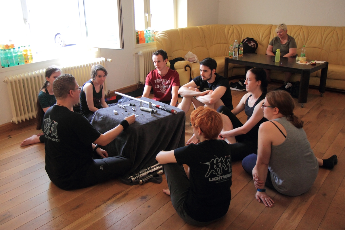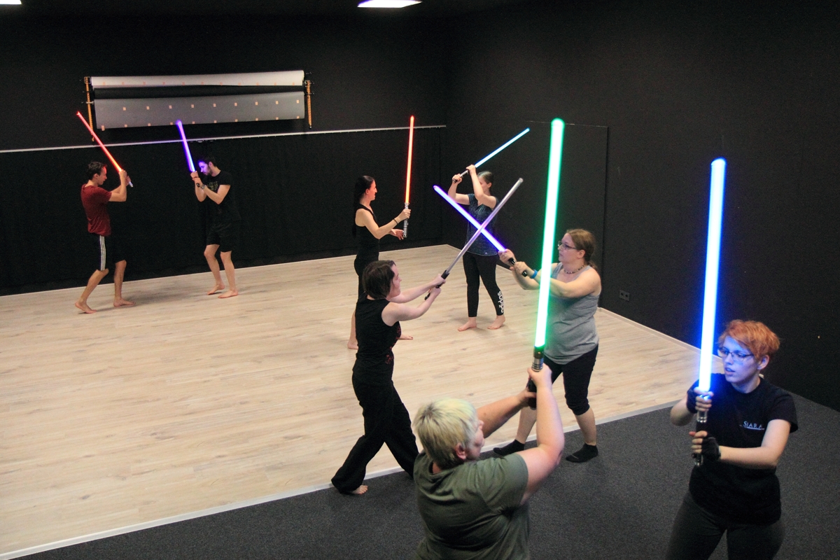 Am 16.06.2018 fanden sich wieder begeisterte Lichtschwertfans zu einem gemeinsamen Workshop in Lichtschwertkampf und -choreographie zusammen. In fünf Stunden gaben wir Einblicke in den Lichtschwertbau und vermittelten sowohl die Grundlagen des Lichtschwertkampfes als auch die Grundlagen der Entwicklung einer Lichtschwertchoreographie. Nach und nach wurden diese von den Teilnehmern in Übungen umgesetzt und so wieder großartige eigene Lichtschwertchoreographien entwickelt. Die Leidenschaft und Kreativität, mit der die Teilnehmer bei der Sache waren und an den Choreographien gearbeitet haben, lies den Workshop für alle Beteiligten wieder zu fantastischen Erlebnis werden.