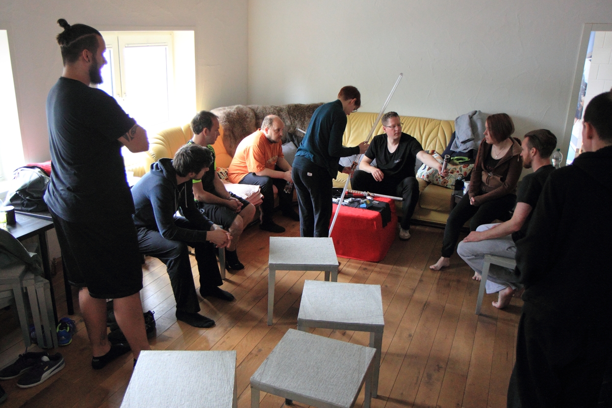 Gemeinsam mit den Teilnehmern wurden entsprechend unseres bewährten Workshopaufbaus in einem ersten Teil zunächst Grundlagen des Lichtschwertkampfes vermittelt, während in einem zweiten Teil der Fokus auf den Grundlagen und der Gestaltung einer Lichtschwertchoreographie lag. In der Pause gab es wie immer einen kleinen Crashkurs im Lichtschwertbau und jede Menge Gelegenheit sich bei Kaffee und Kuchen auszutauschen. Zusätzlich motiviert durch den Star Wars Tag waren alle mit voller Hingabe und Leidenschaft bei der Sache. Es wurde viel gelacht und am Ende entstanden fantastische Lichtschwerchoreographien.