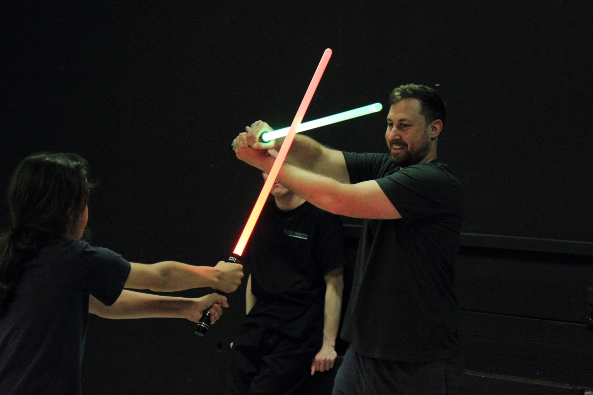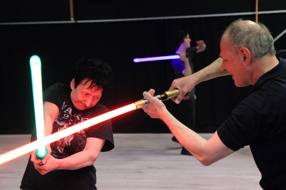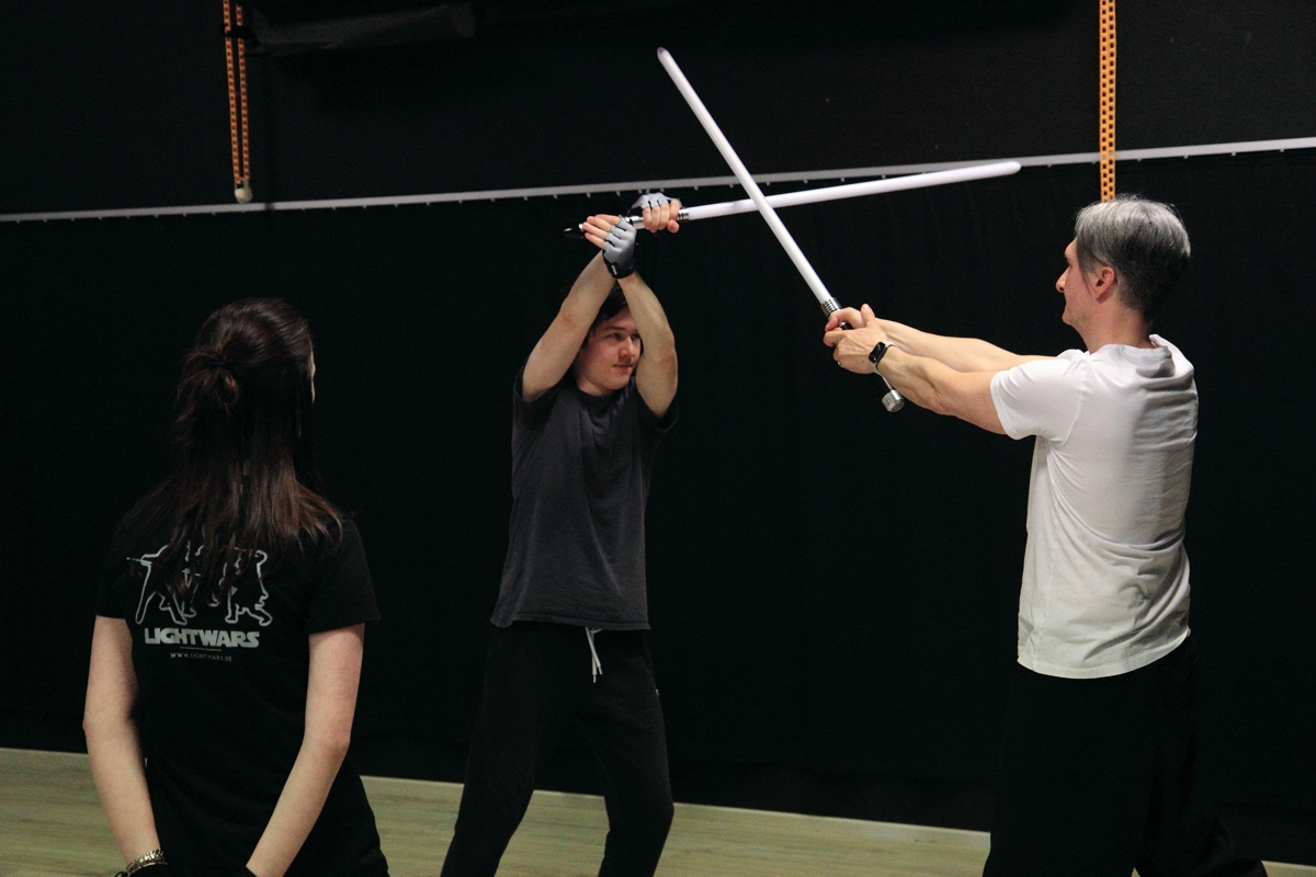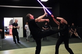 Im zweiten Teil unseres Workshops liegt der Schwerpunkt auf der Lichtschwertchoreographie. Wir zeigen euch, wie ihr mit eurem Sparringspartner gemeinsam imposante und fantastische Choreographien entwickelt und welche Regeln es dabei zu beachten gilt.