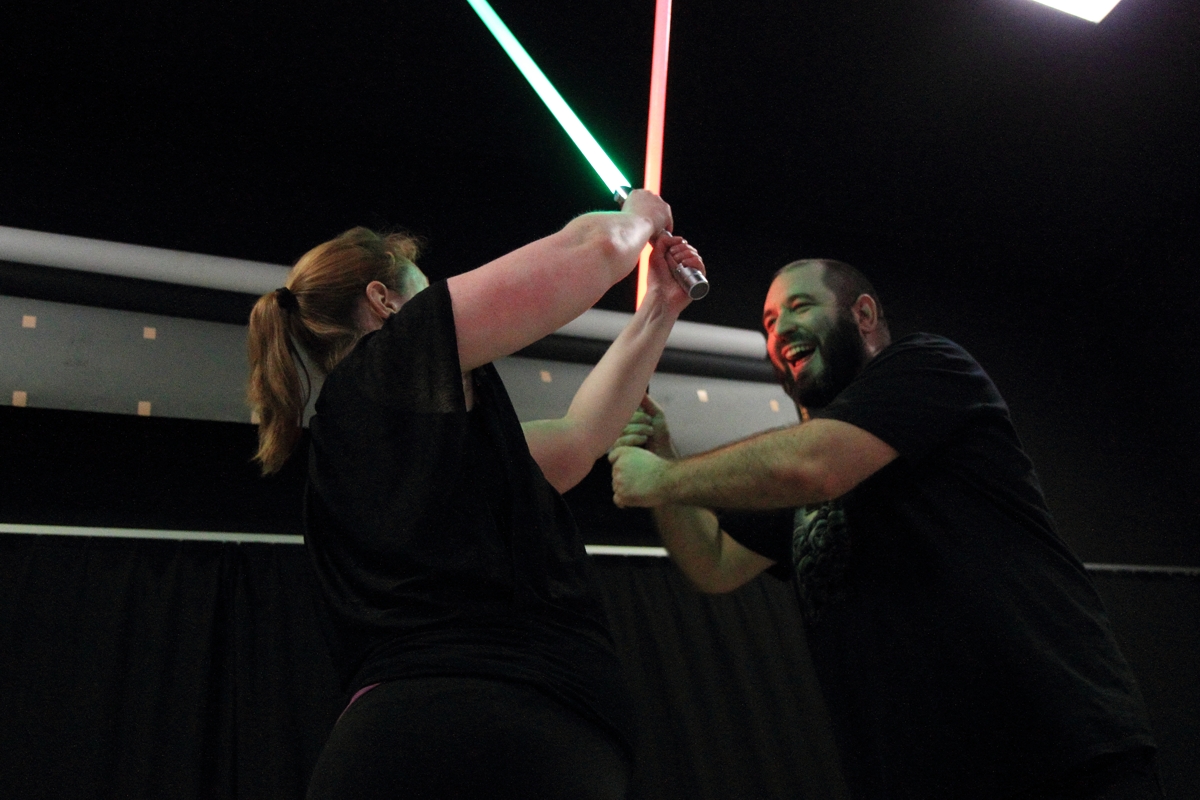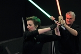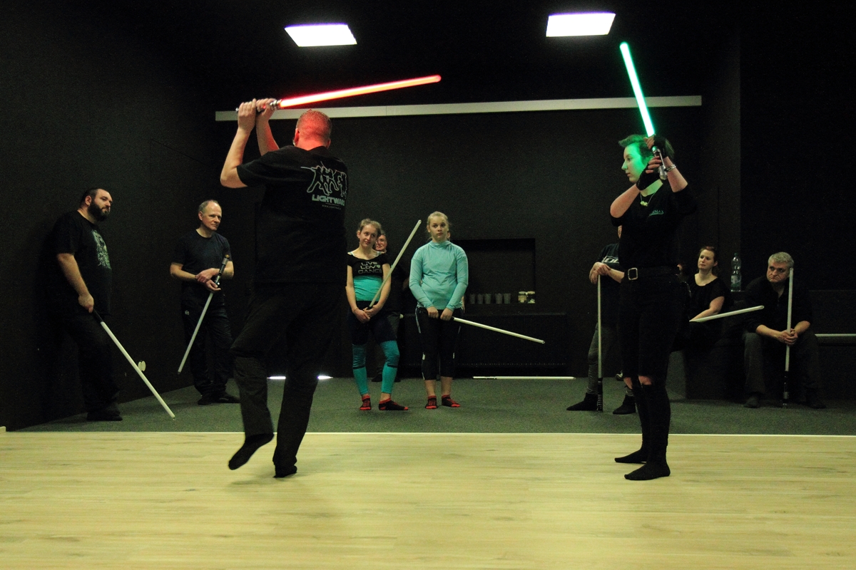 Im zweiten Teil unseres Workshops liegt der Schwerpunkt auf der Lichtschwertchoreographie. Wir zeigen euch, wie ihr mit eurem Sparringspartner gemeinsam imposante und fantastische Choreographien entwickelt und welche Regeln es dabei zu beachten gilt.