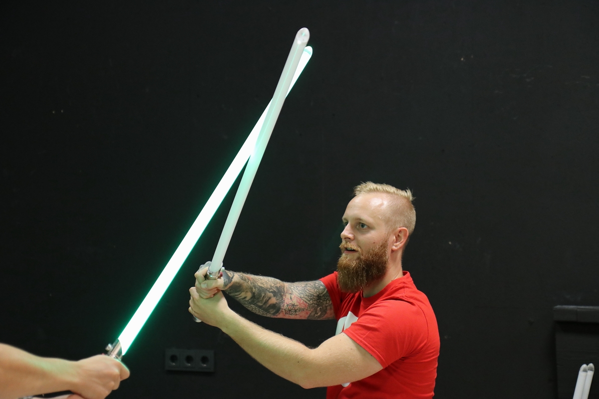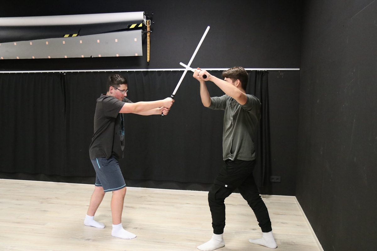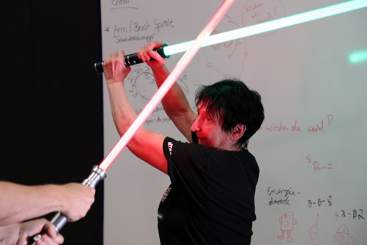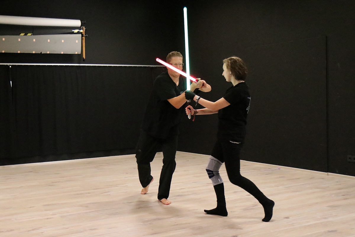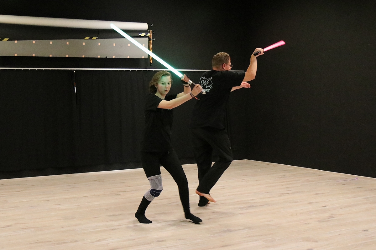 Im zweiten Teil unseres Workshops liegt der Schwerpunkt auf der Lichtschwertchoreographie. Wir zeigen euch, wie ihr mit eurem Sparringspartner gemeinsam imposante und fantastische Choreographien entwickelt und welche Regeln es dabei zu beachten gilt.