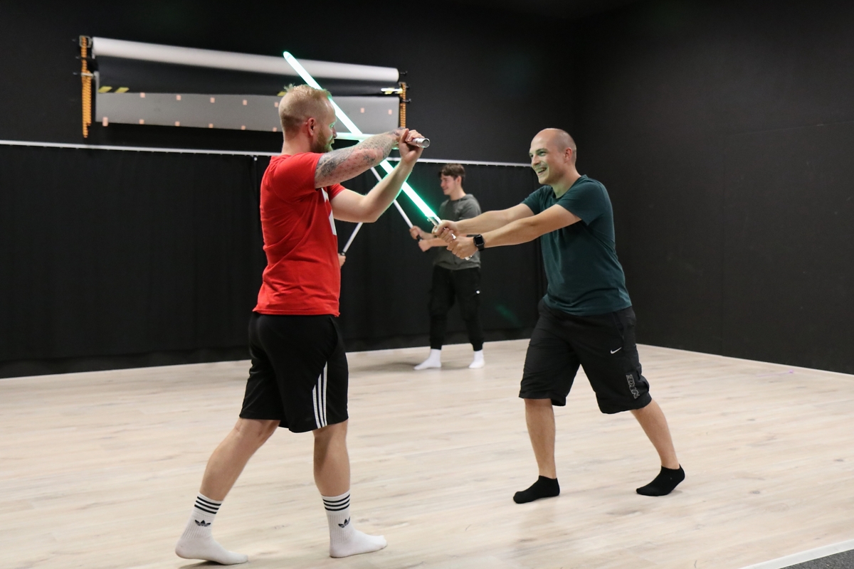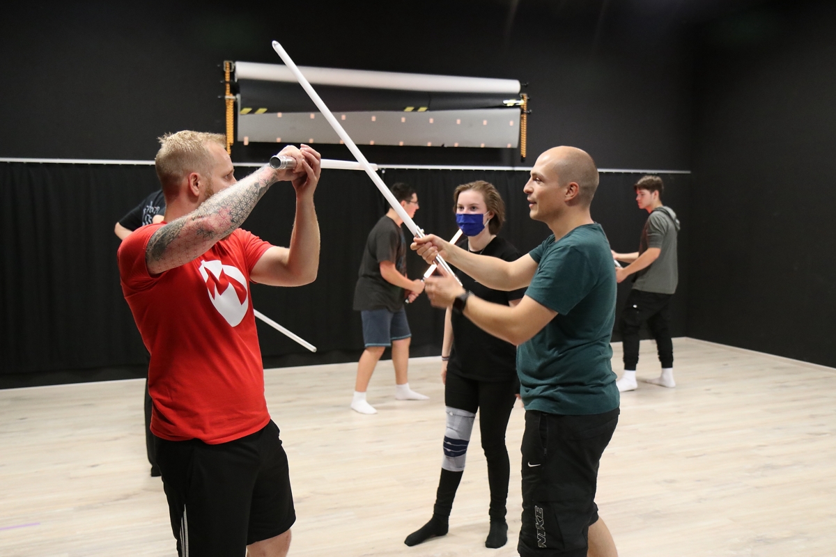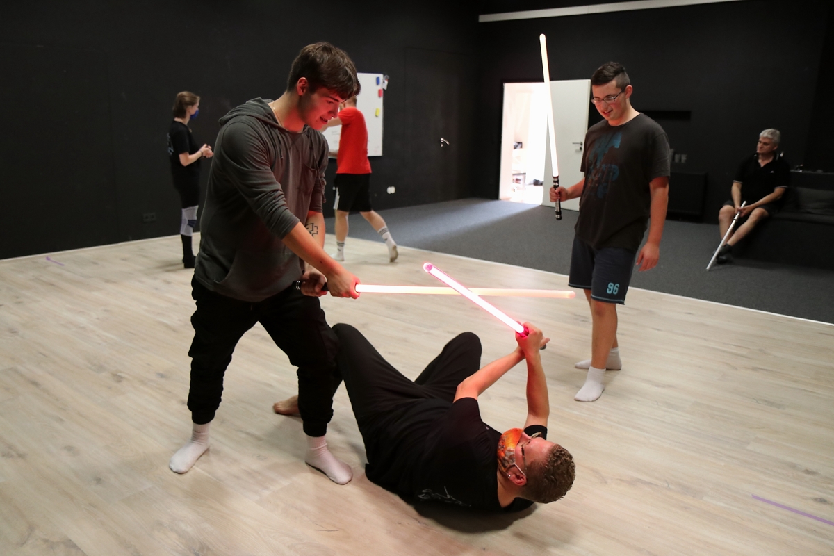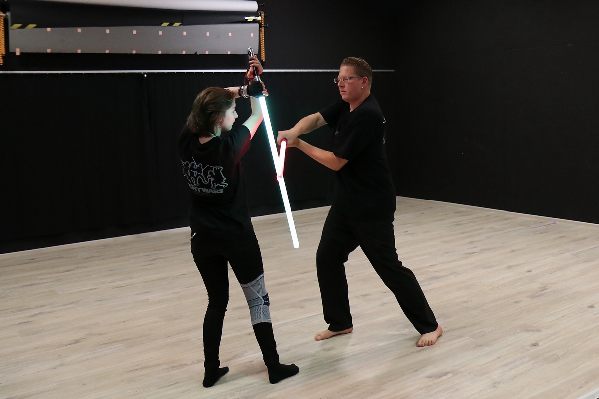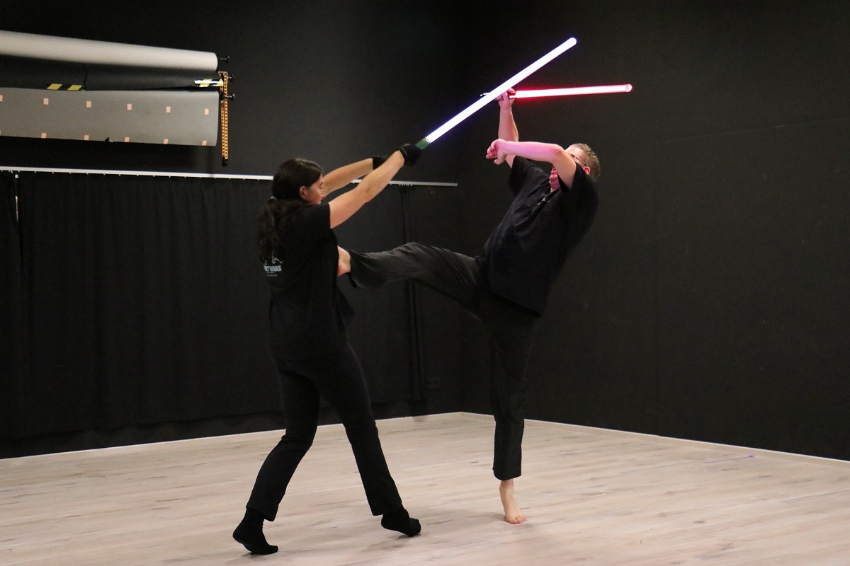 Im zweiten Teil unseres Workshops liegt der Schwerpunkt auf der Lichtschwertchoreographie. Wir zeigen euch, wie ihr mit eurem Sparringspartner gemeinsam imposante und fantastische Choreographien entwickelt und welche Regeln es dabei zu beachten gilt.